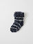 Ein Paar gestreifte Söckchen aus weichem Wollfrottee, der bei Kälte schön warm hält. Die Söckchen haben unser klassisches Streifenmuster, die Größe ist an der Innenseite des Schaftes angegeben. Dort ist auch Platz für den Namen des Kindes. Ordnung halten ist so einfach!