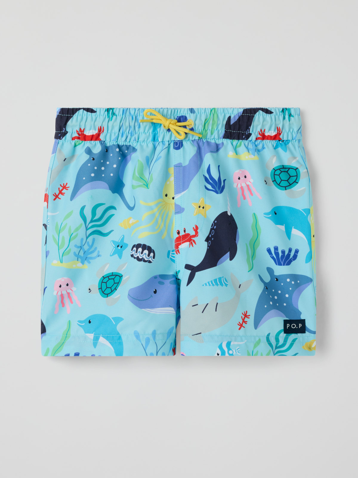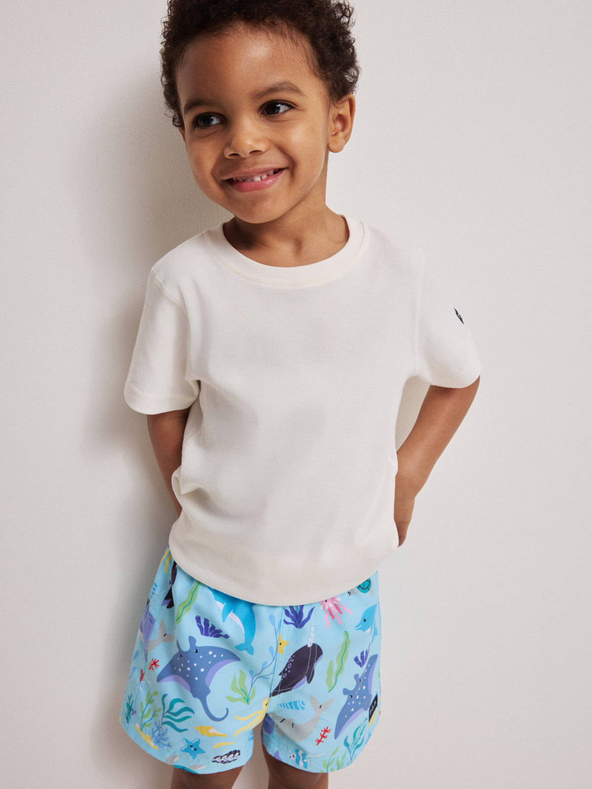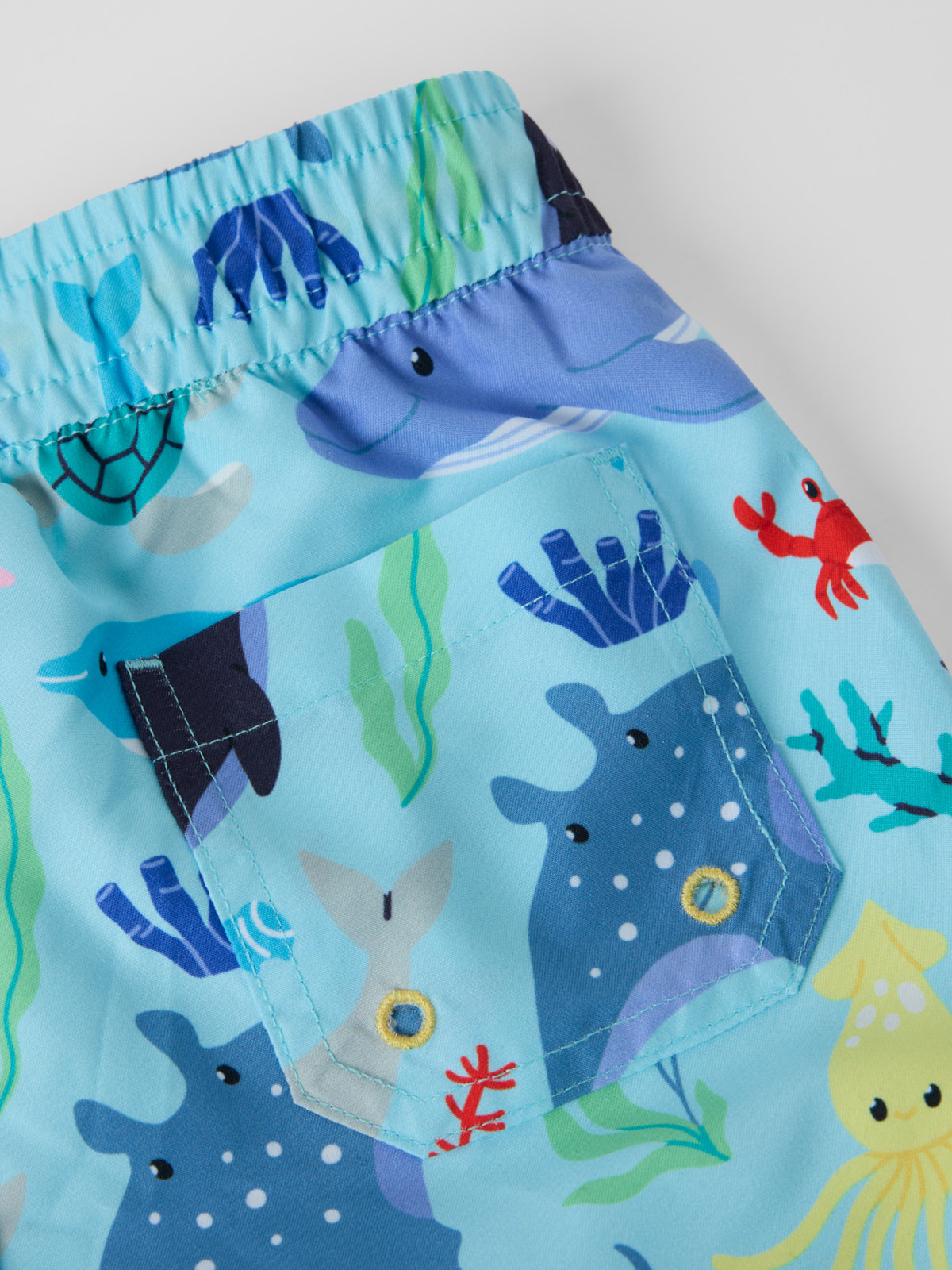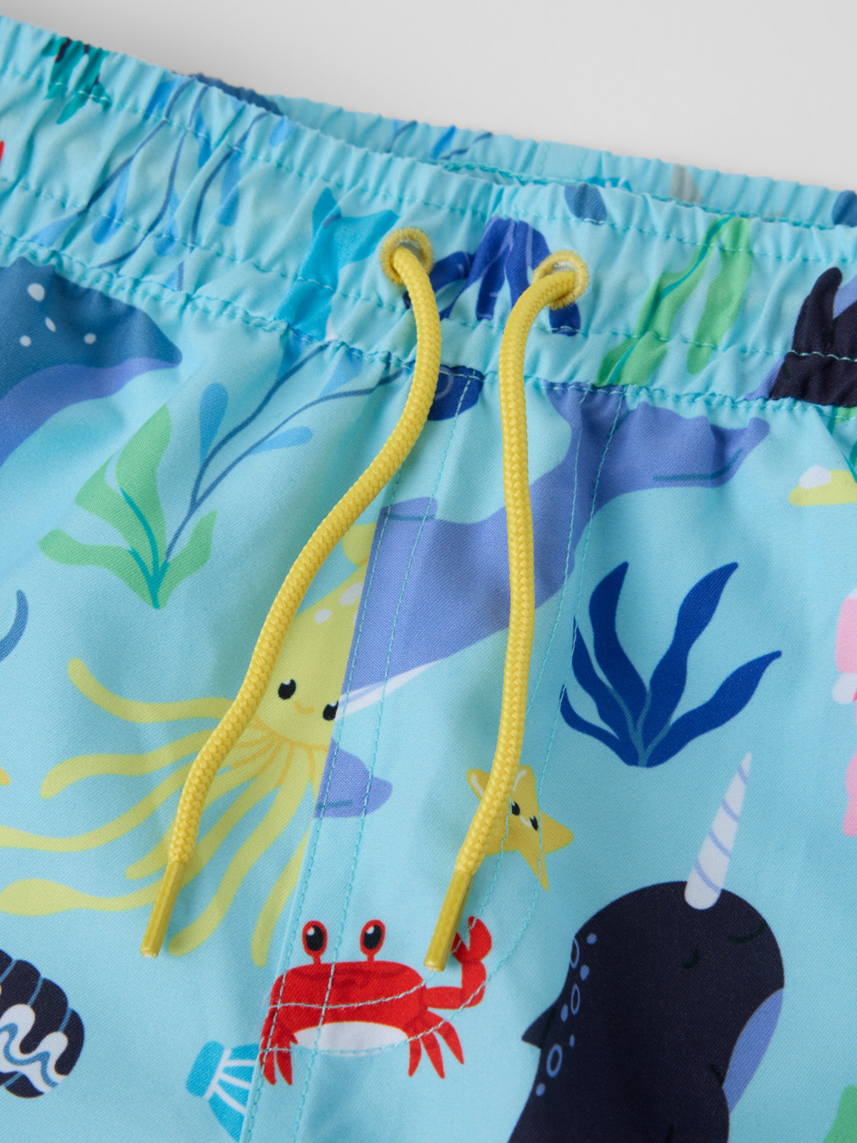 Badeshorts mit elastischem Bund und Kordelzug, gefertigt aus recyceltem Polyester. Die Shorts haben ein weiches Mesh-Innenfutter und eine Gesäßtasche.