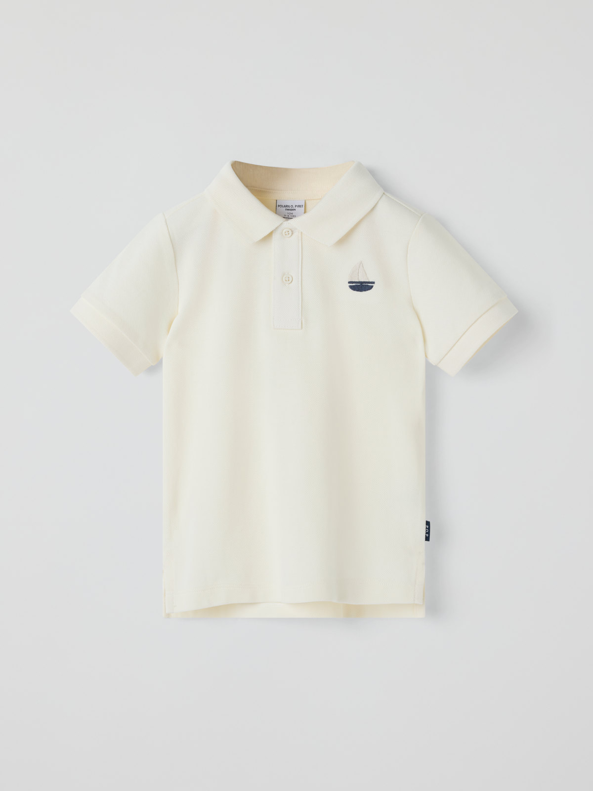 Kurzärmliges Poloshirt aus 100 % Bio-Baumwolle mit klassischem Kragen und Knopfleiste – ein tolles Teil für jeden Anlass! Auf der Brust ist ein kleines Segelboot aufgestickt, die Ärmelabschlüsse sind gerippt für eine bequeme Passform.