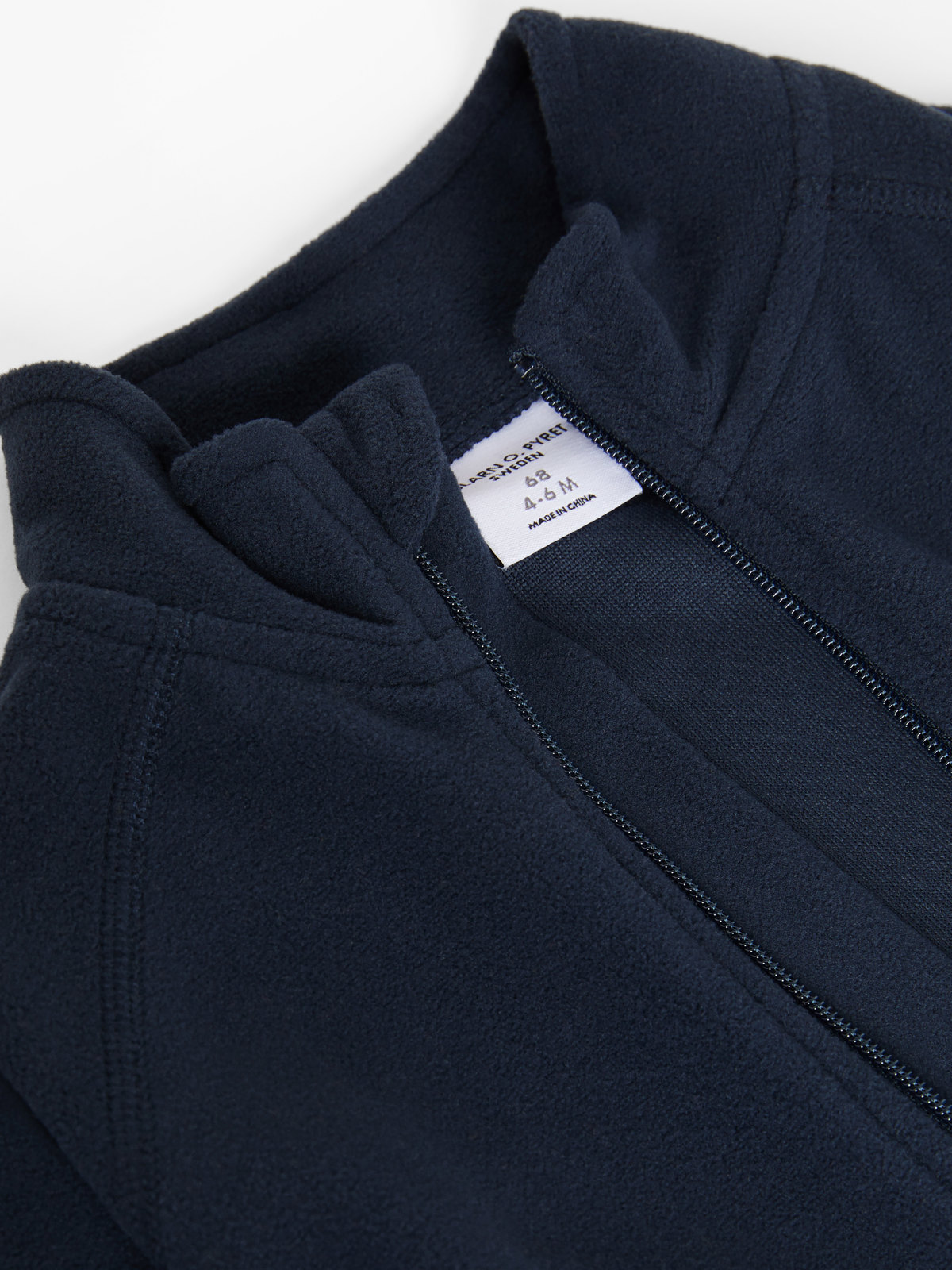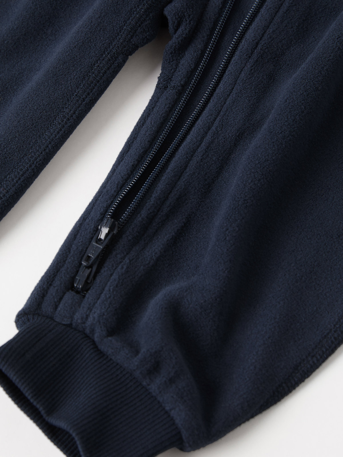 Der Reißverschluss kann von oben und unten geöffnet werden und ist oben mit einem Kinnschutz unterlegt, damit an Hals und Gesicht nichts kratzt. Größe 62-92 hat einen Reißverschluss vom Hals bis zum Beinabschluss. In den Größen 98-104 reicht der Reißverschluss bis zu einem Hosenbein hinunter. Das ist praktisch beim An- und Ausziehen. In Größe 110-116 endet der Reißverschluss am Schritt.
