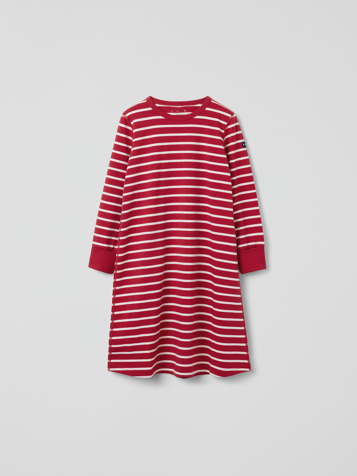 Gemütliches, tragefreundliches Nachthemd aus Bio-Baumwolle. Das Nachthemd mit unseren klassischen Streifen hat weiche Ärmelbündchen.