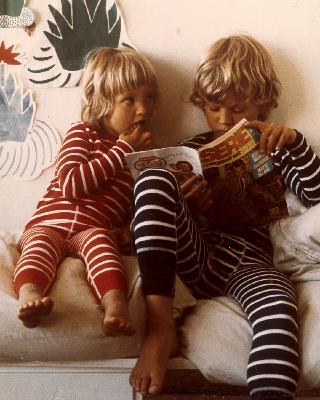 With childrenswear now front and centre business was booming, and as part of an in-house collaboration between Gunila AxĂ©n and Katarina af Klintberg, something very special was created in the 1970s: PO.P Originals â our basic garments with classic stripes. They were available in red, blue and brown. Colours deliberately chosen to reflect our creed of âletting children be childrenâ.