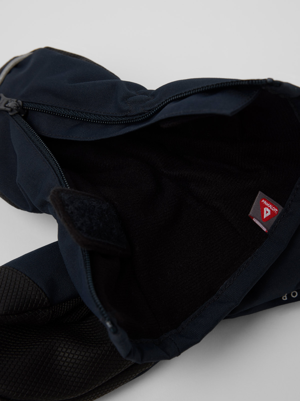 Solid colour mittens in wind- and waterproof fabric, with warm padding and zipper closure – super easy to put on and take off!