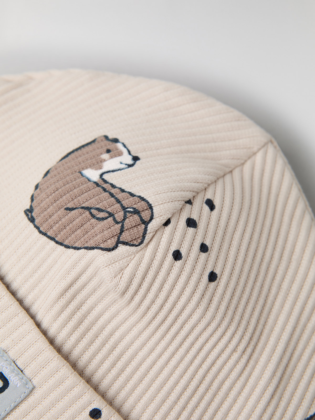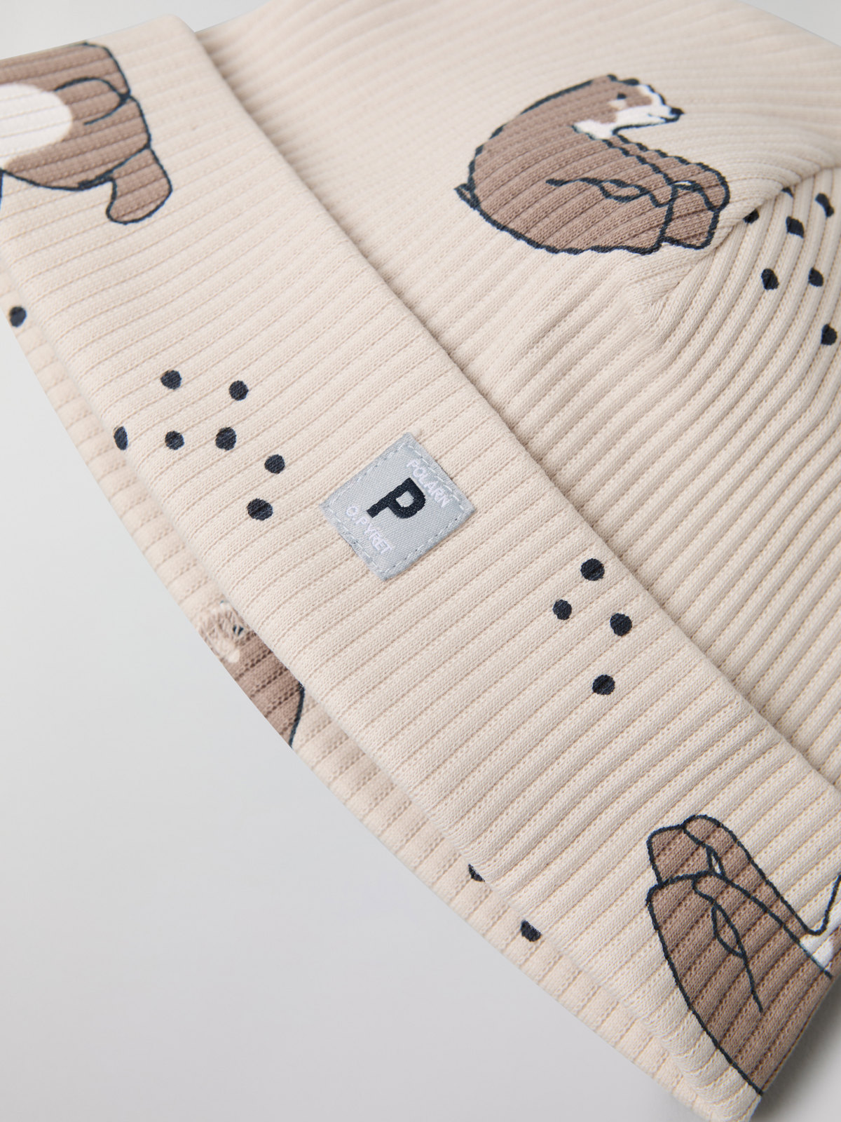 Ribbed beanie for baby in 100% organic cotton jersey with an allover small bear print.