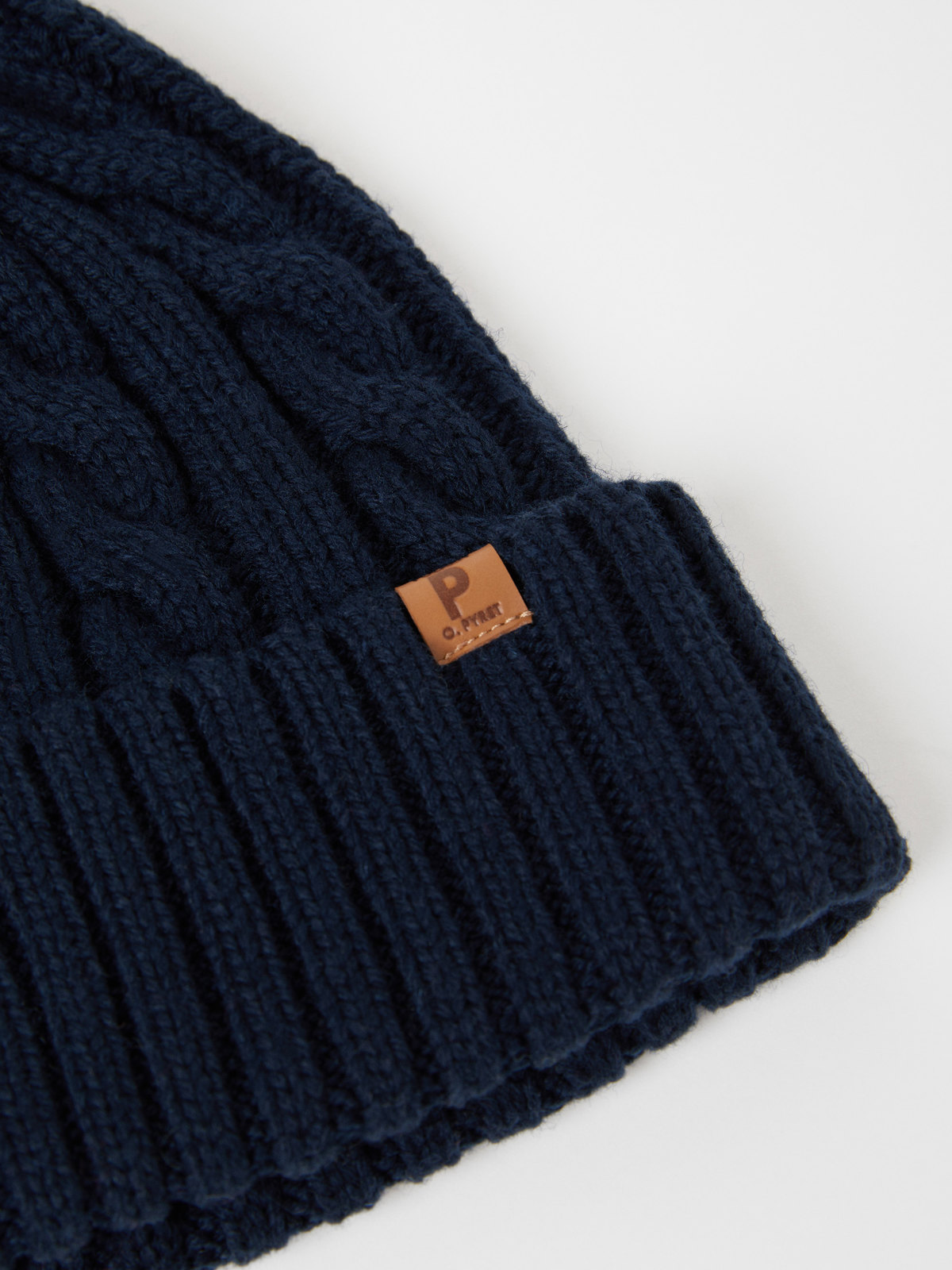 Cable-knit hat in a warm wool blend. The hat has a lovely turn-up to protect the ears.