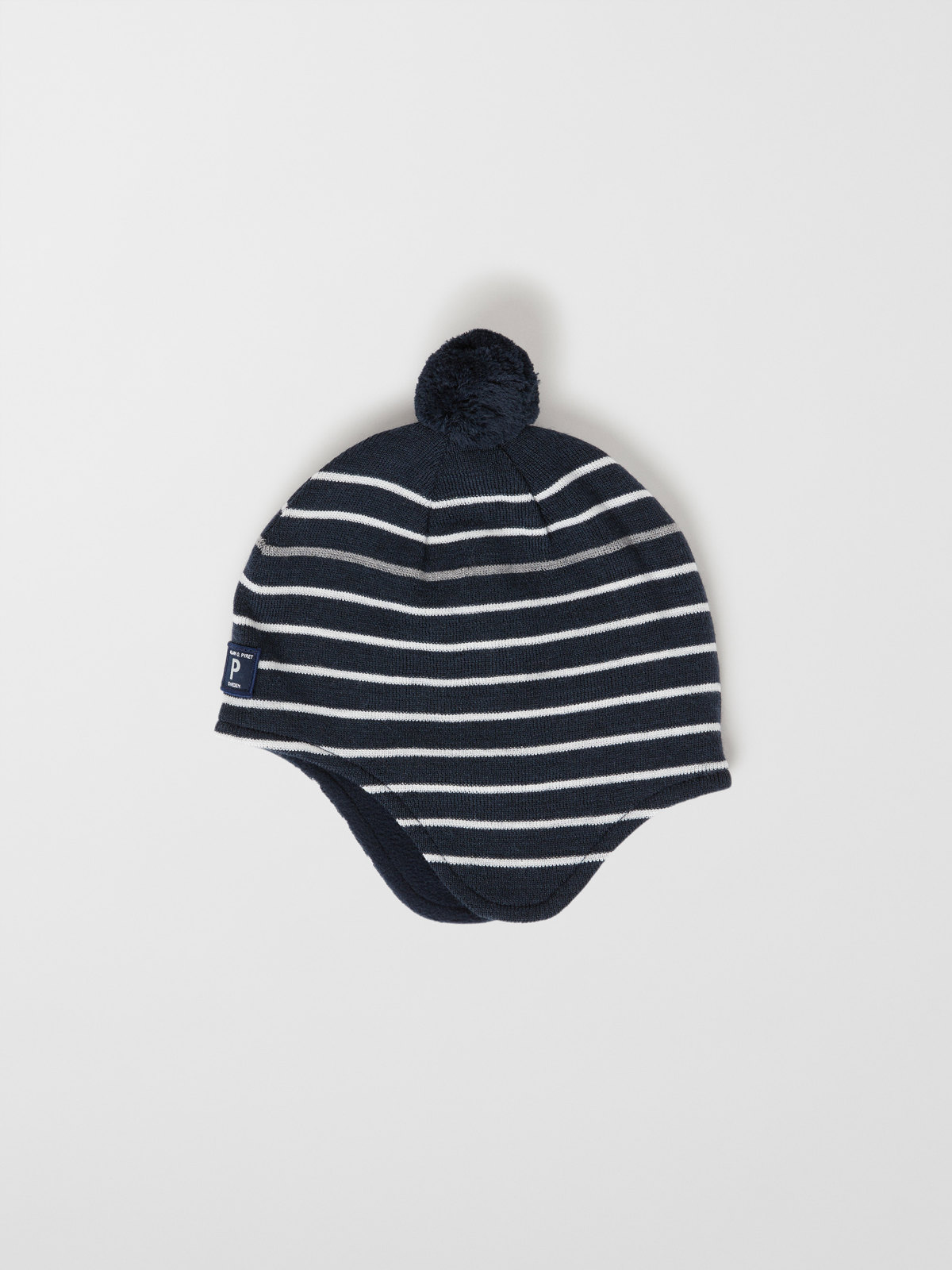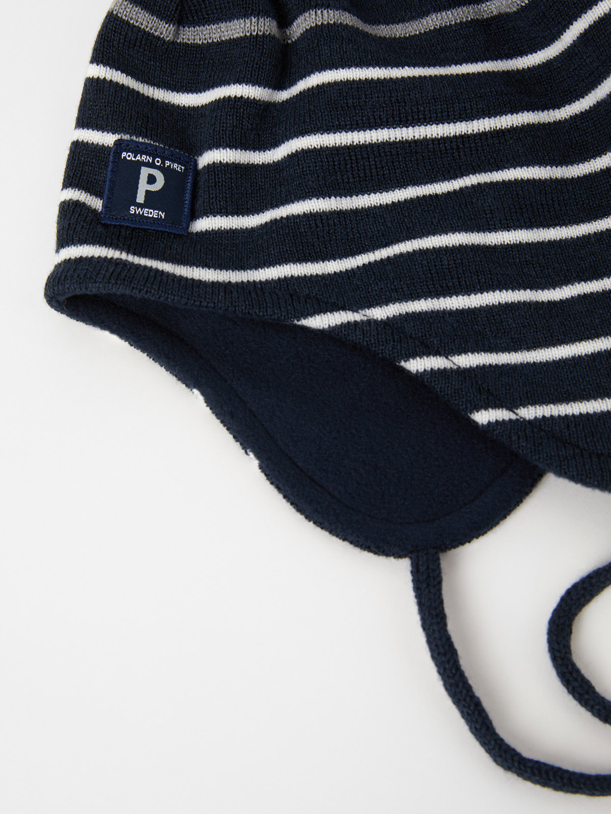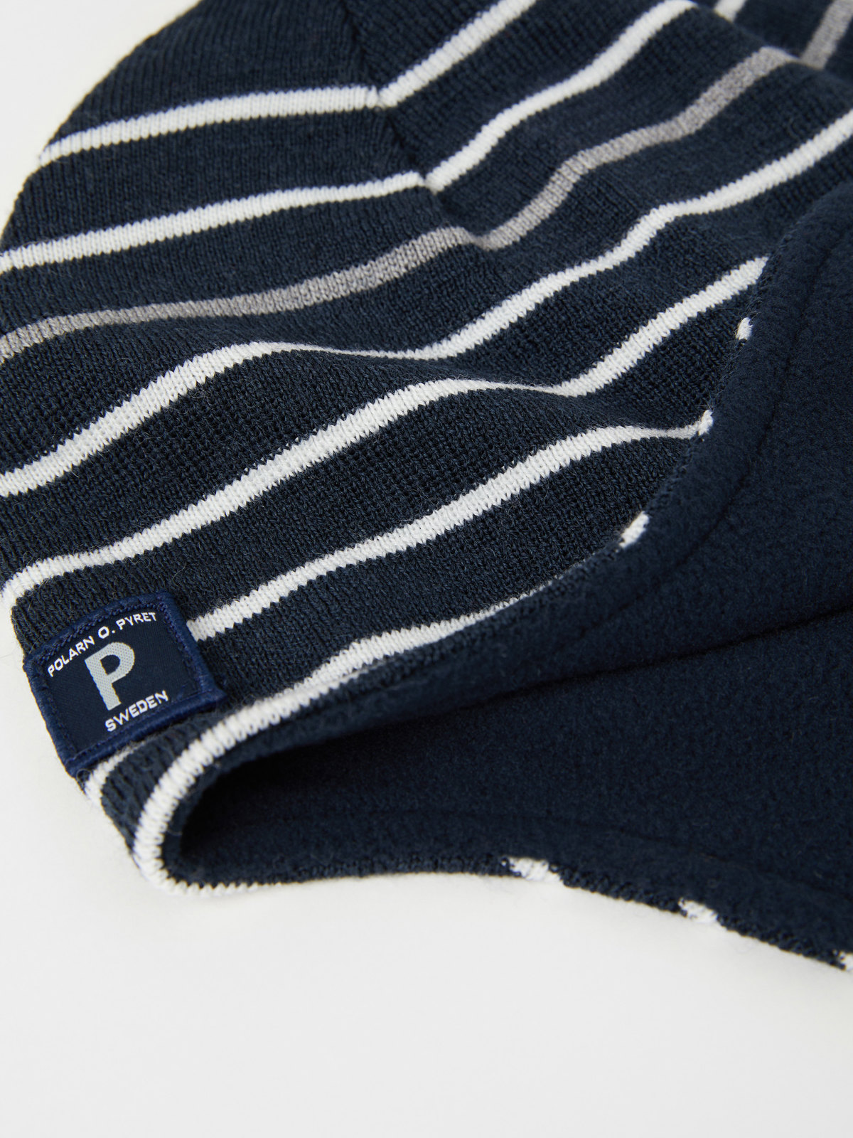 Striped helmet hat in cozy wool blend. The hat is windproof and goes down over the ears. It also has a soft fleece lining and a reflective stripe for good visibility in the dark. The tie strings under the chin help to keep the hat in place. Size 52/54 is without ties. Wool retains warmth even in wet conditions.