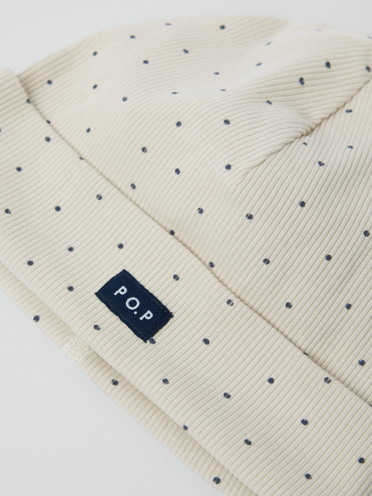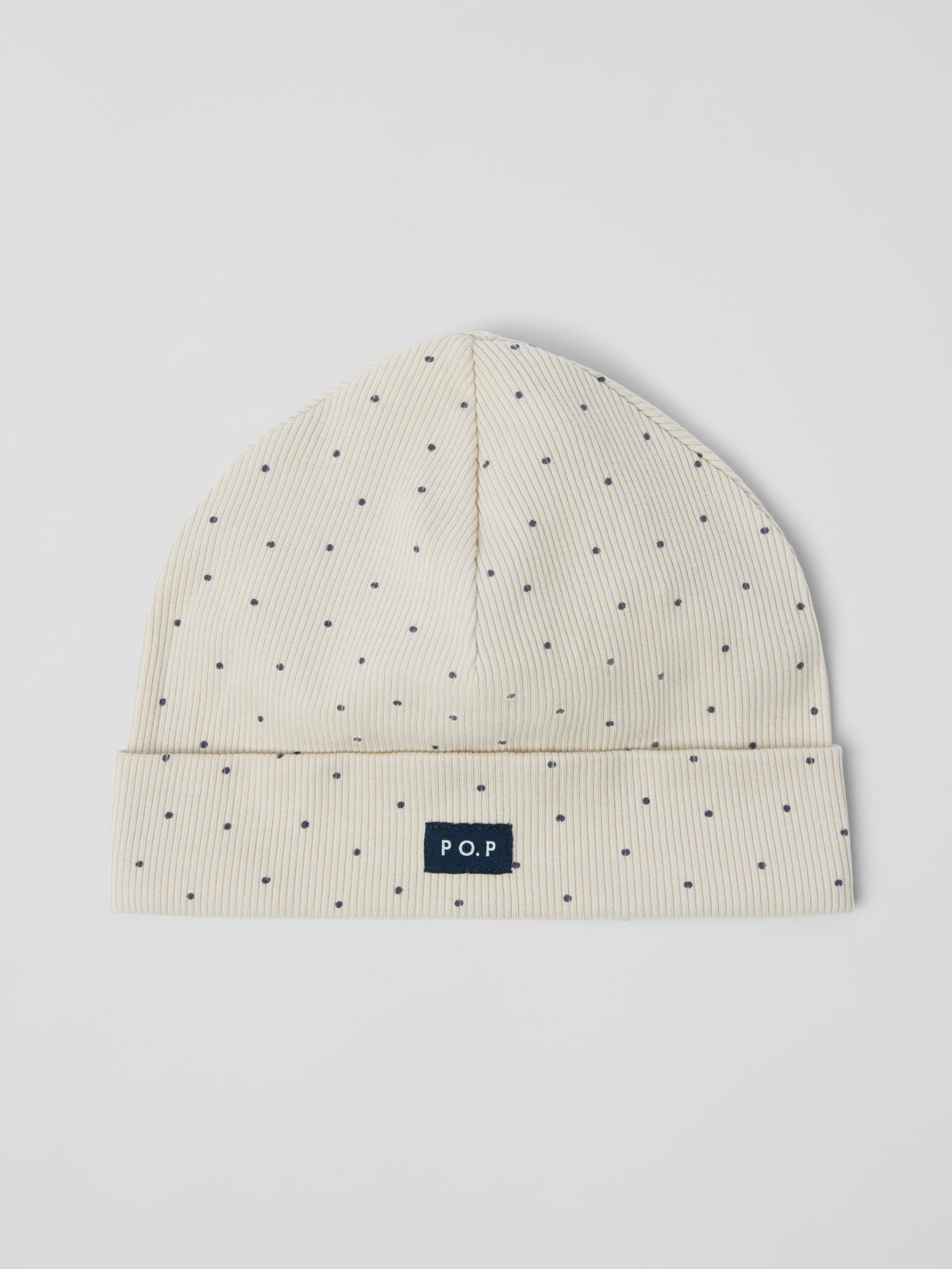 Ribbed hat in a soft mix of Tencel™ lyocell and organic cotton – perfect from day one! This hat has extra soft seams that are gentle on delicate skin, and a turn-up brim that can be adjusted to fit the baby’s head.