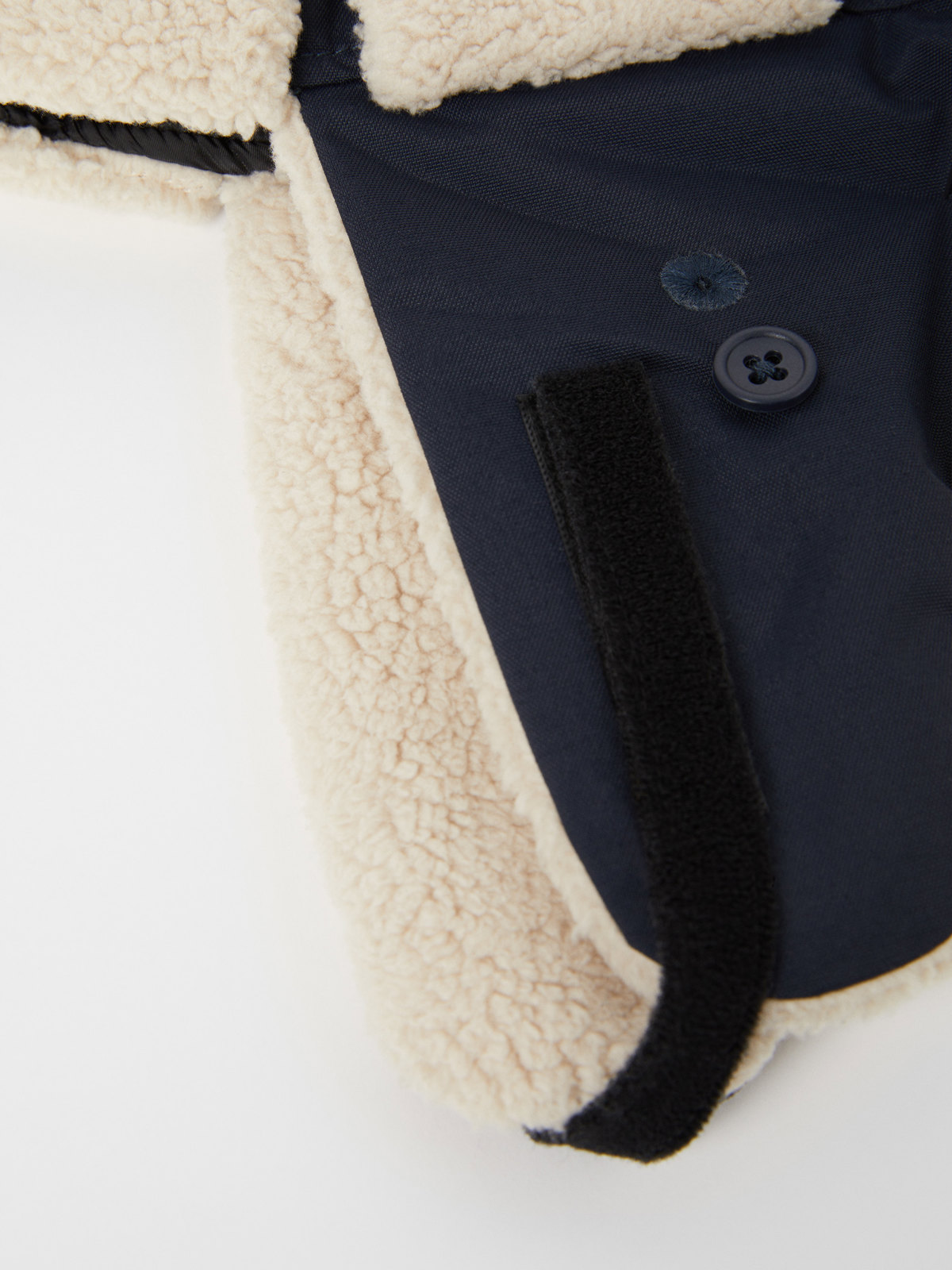 Padded hat in wind- and waterproof fabric, with soft pile lining made from recycled polyester. The hat has good breathability and is perfect for outdoor adventures in the cold. The Velcro closure under the chin helps to keep the hat in place.
