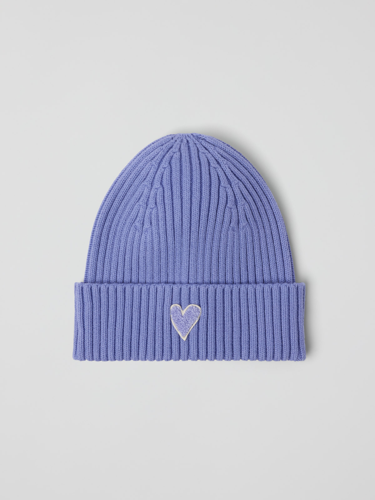 Ribbed beanie in organic cotton – perfect for chilly autumn days. The beanie has a turn-up with an embroidered appliqué at the front.