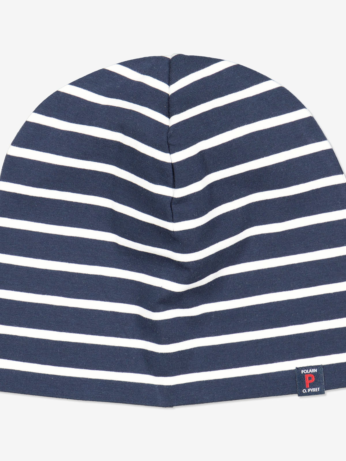 Thin, striped beanie in 100% organic cotton. Country of manufacture: China Factory: Shunde Gain Rich Garment Co. Ltd. Read more at https://www.polarnopyret.com/pop-cares/our-suppliers