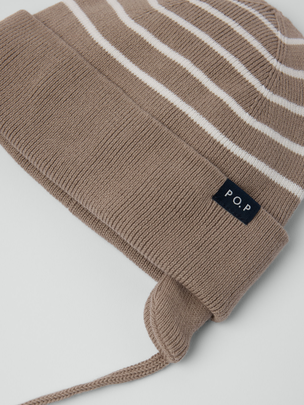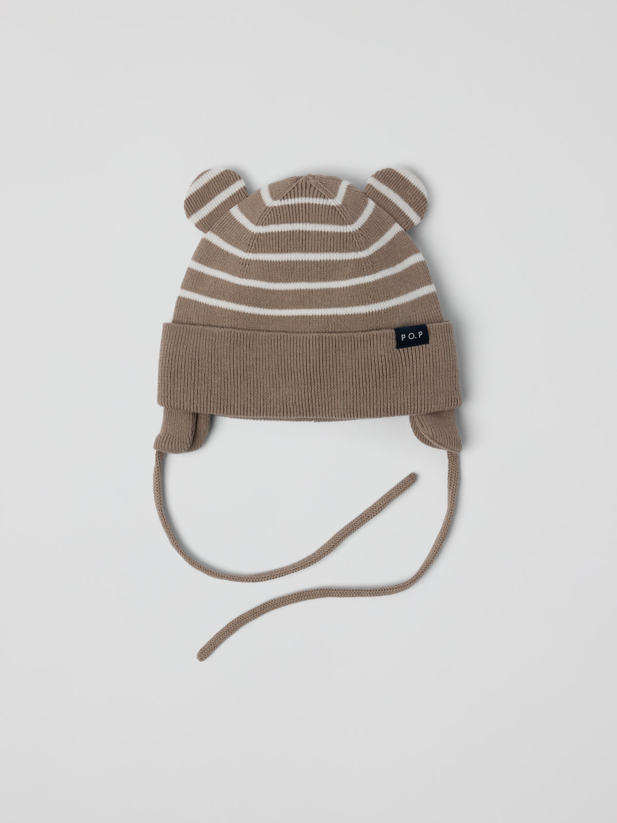 Knitted hat in 100% organic cotton with a soft jersey lining – comfy for both the pram and baby carrier. This hat features our classic stripes and integral ears. It also has a ribbed brim and earflaps to keep little ears warm. The hat is held in place by a soft strap that is tied under the chin.