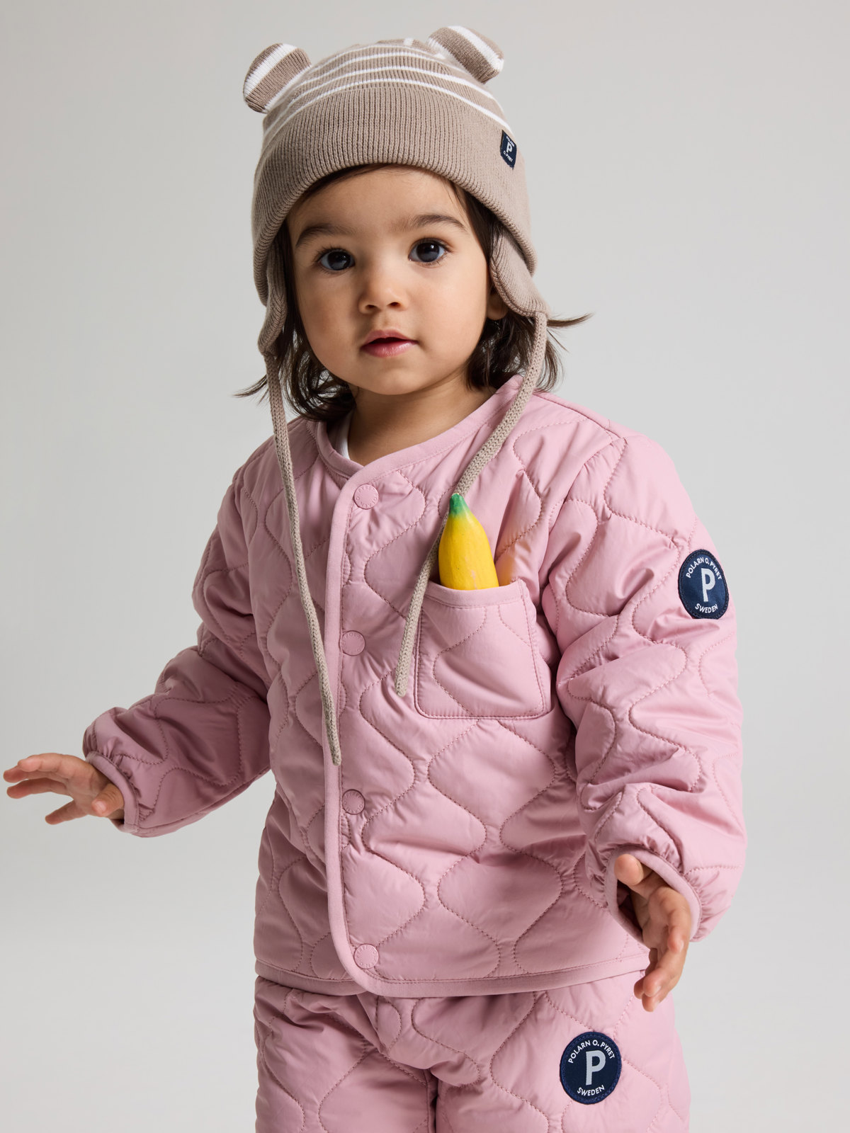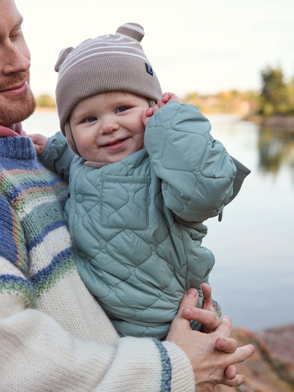 Knitted hat in 100% organic cotton with soft jersey lining – comfy for both the stroller and baby carrier.