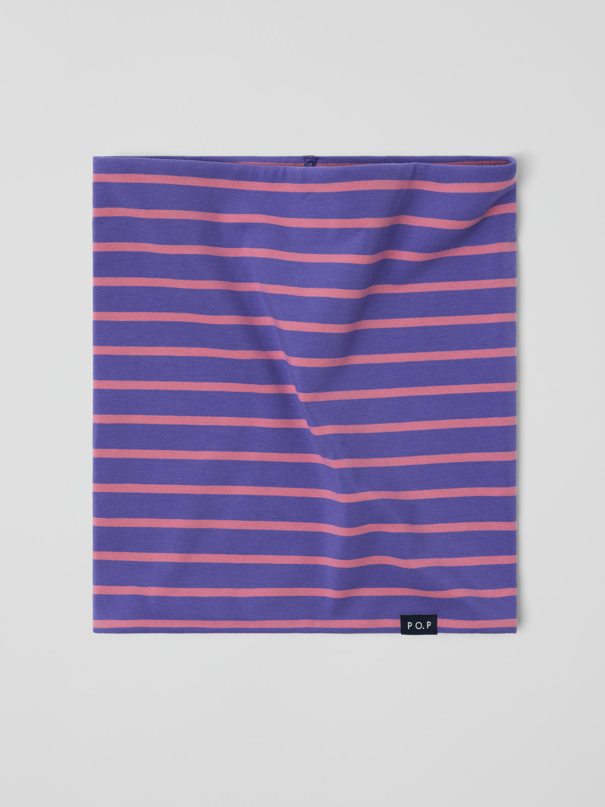 Striped neck warmer in organic cotton jersey. The neck warmer has a soft fleece lining in recycled polyester, and is ideal to wear under a jacket or rain suit for extra warmth on chillier days.