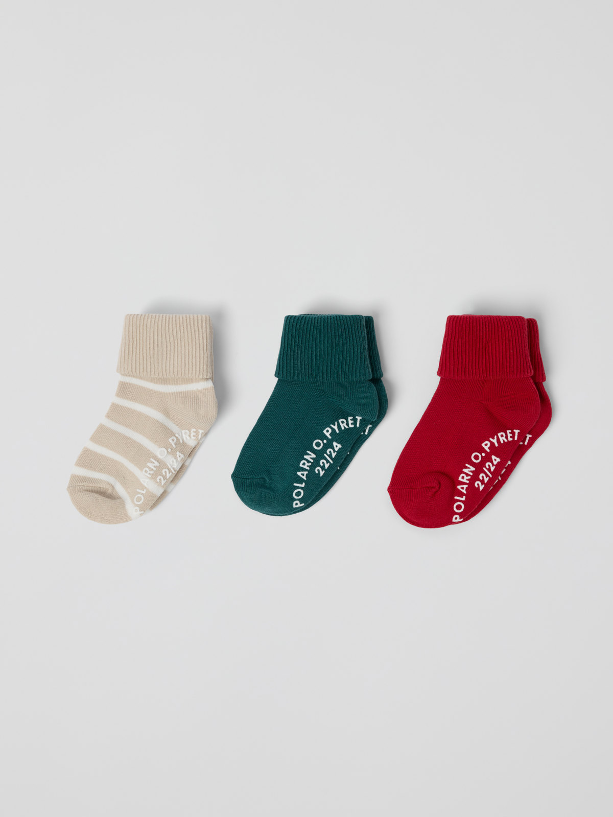 Stock up the sock drawer with this 3-pack of socks with anti-slip soles. The socks are made from soft organic cotton and have cuffs that can be folded up or down.