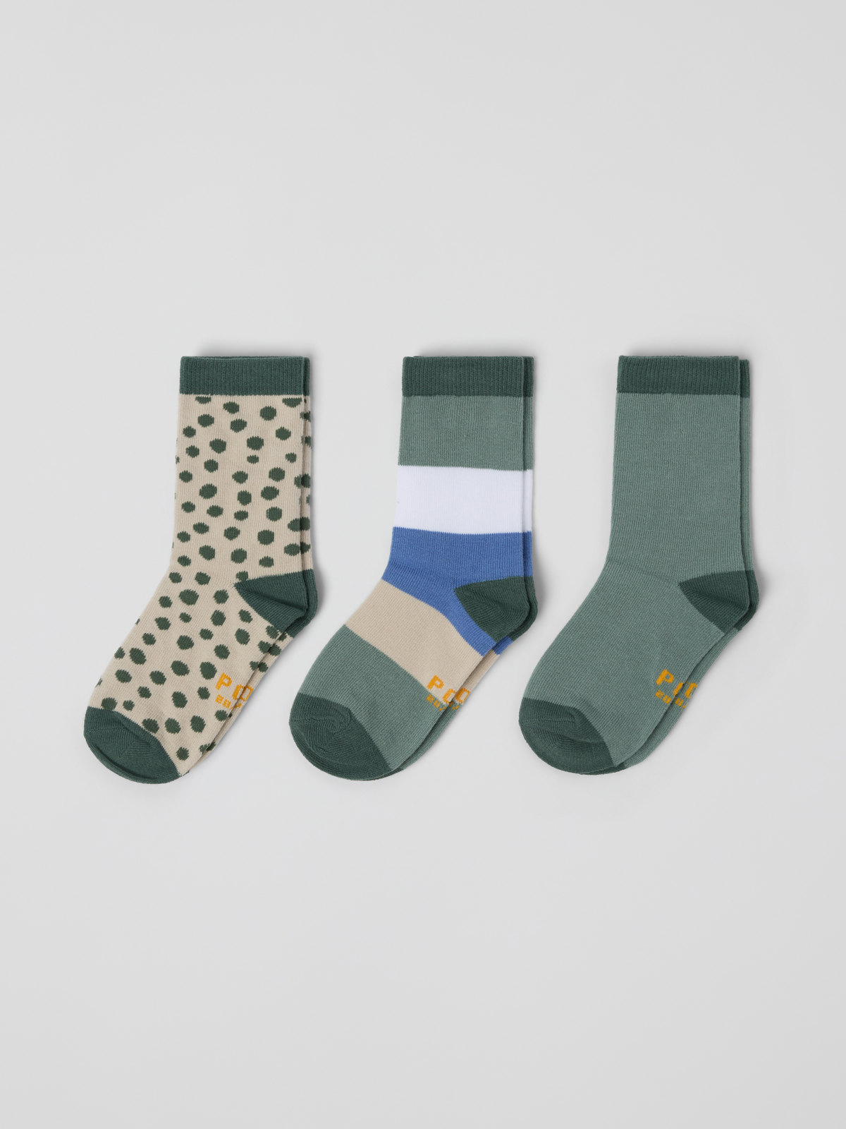 3-pack socks in soft, organic cotton. Each pair has a unique design and matches nicely with other items in our collection.