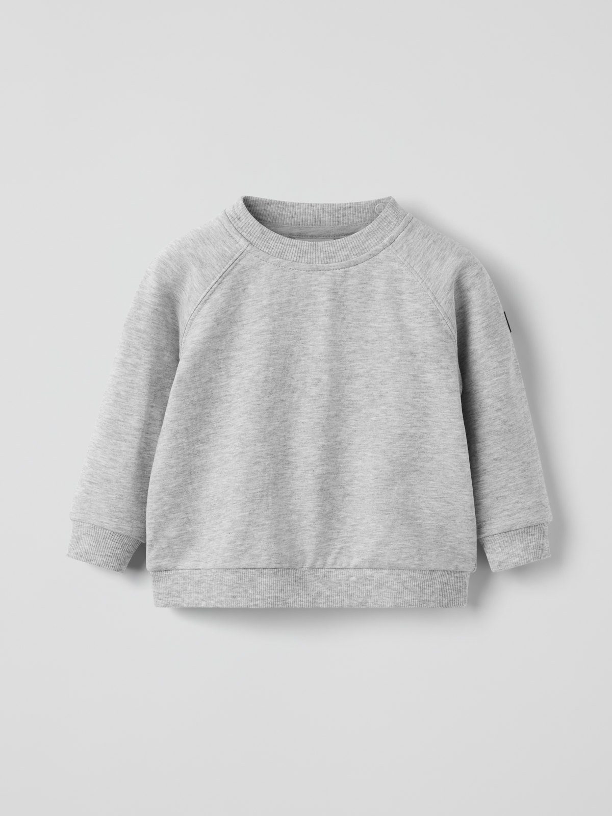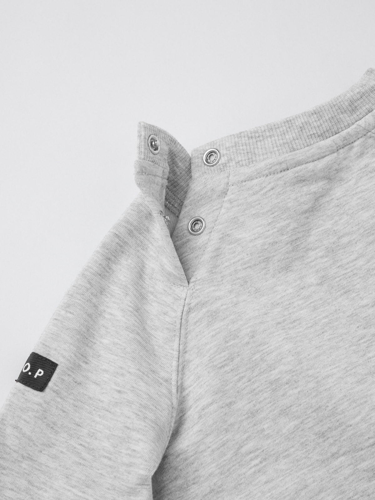 Jumper in 100% organic cotton with a soft sweatshirt quality for your little one. The perfect garment for any occasion! It has a ribbed neckline and cuffs with snaps on the shoulder to facilitate dressing.