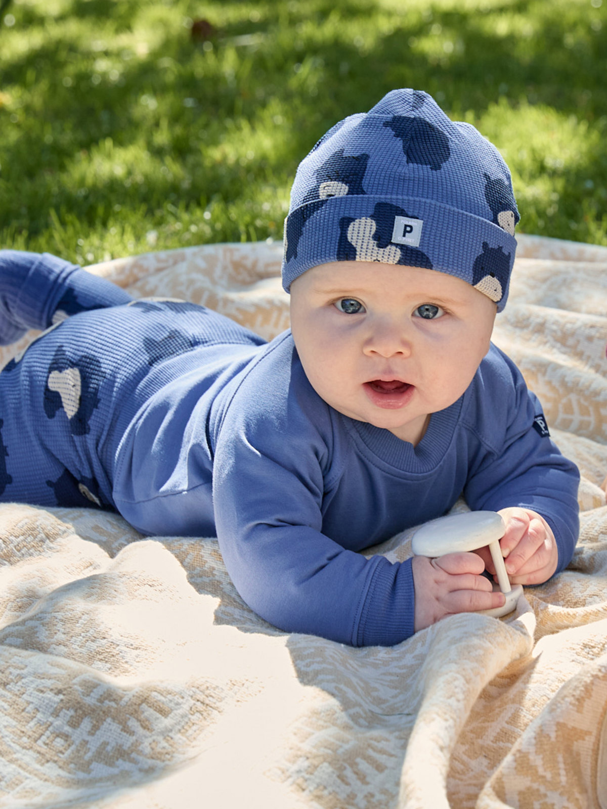 Ribbed beanie for baby in 100% organic cotton jersey with an allover small bear print.