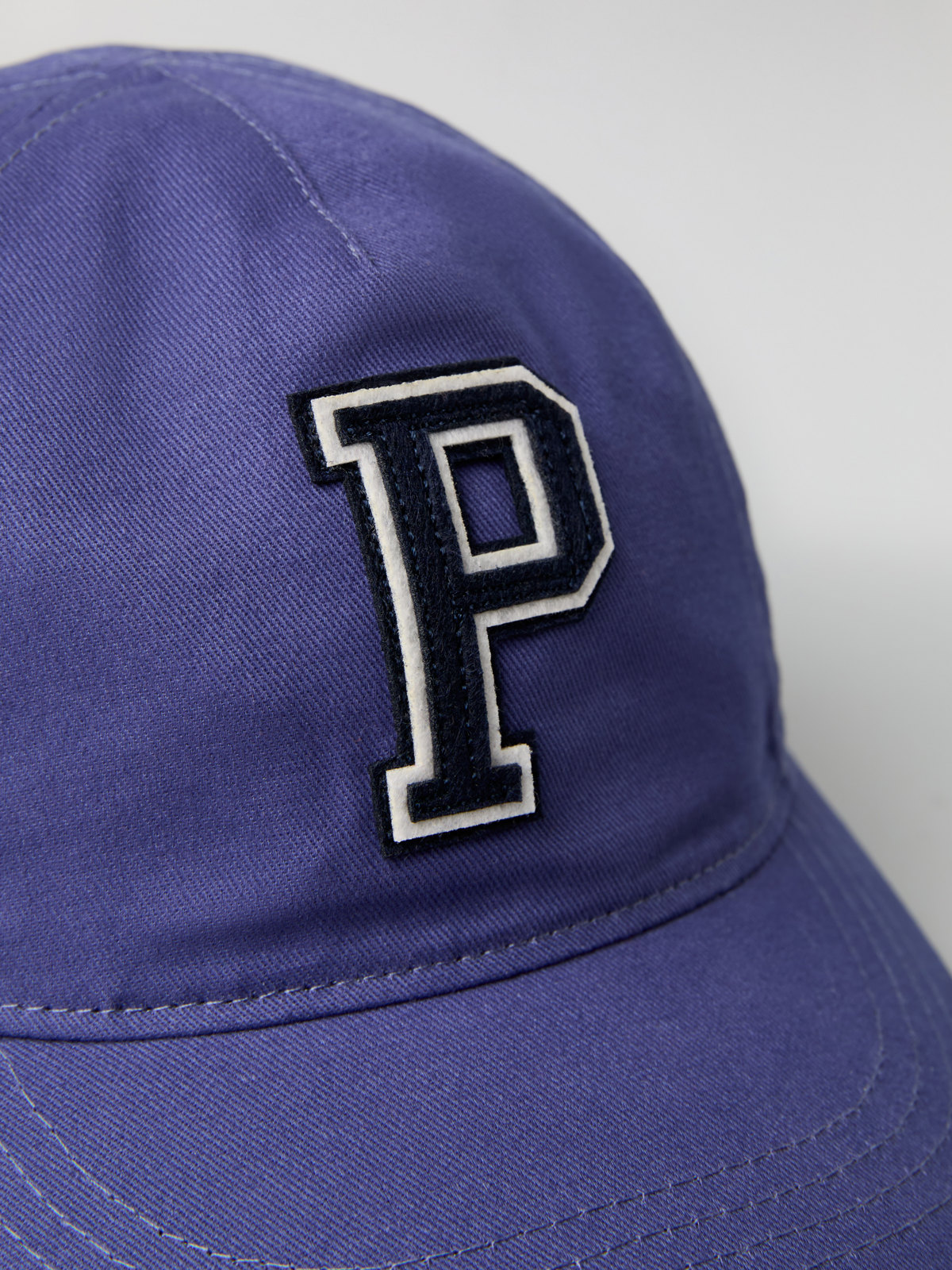 Our classic cap with “P” appliqué in a new lovely color. The cap is made of 100% organic cotton and has embroidered vent holes. The size can be adjusted with Velcro at the back.