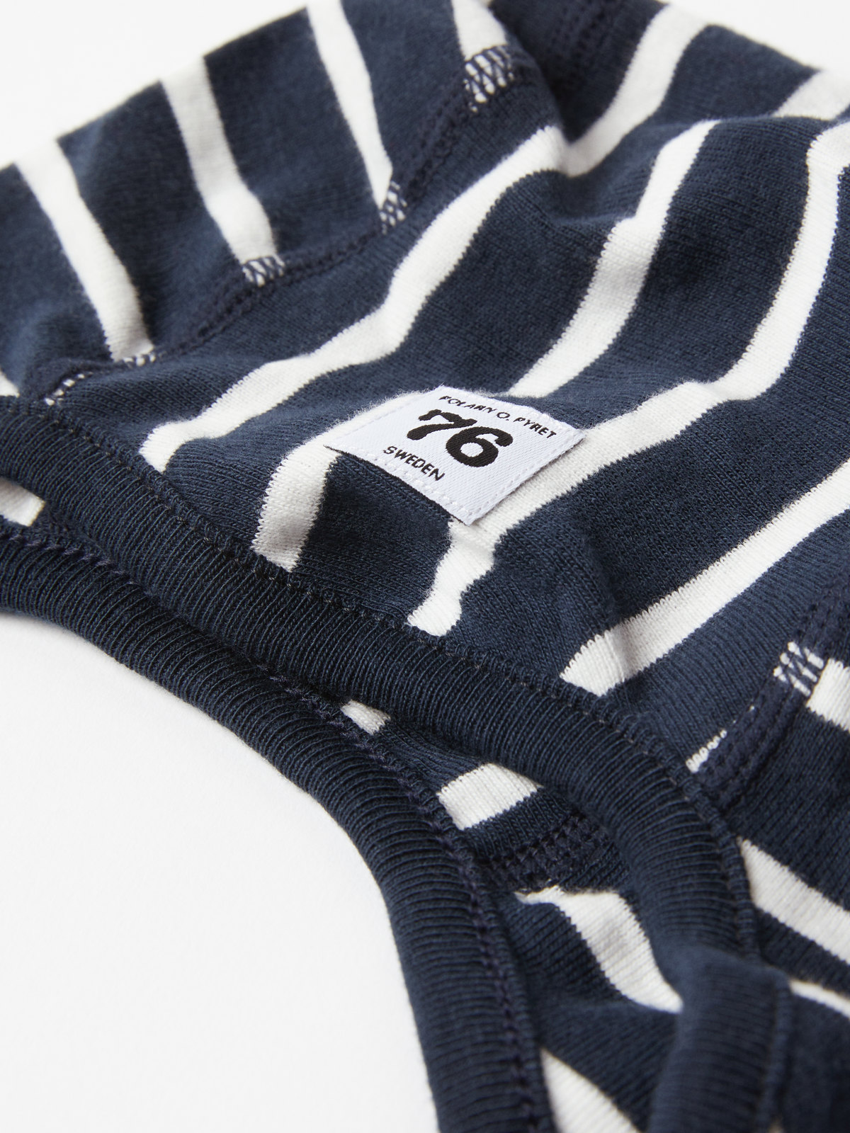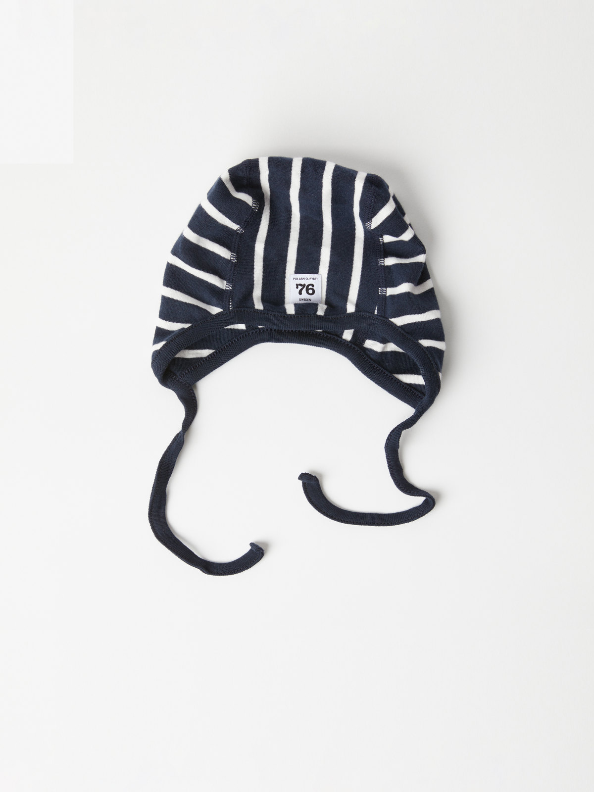 Striped helmet hat in 100% organic cotton for newborn. The hat features our classic stripes and is kept in place by tying the straps under the chin.