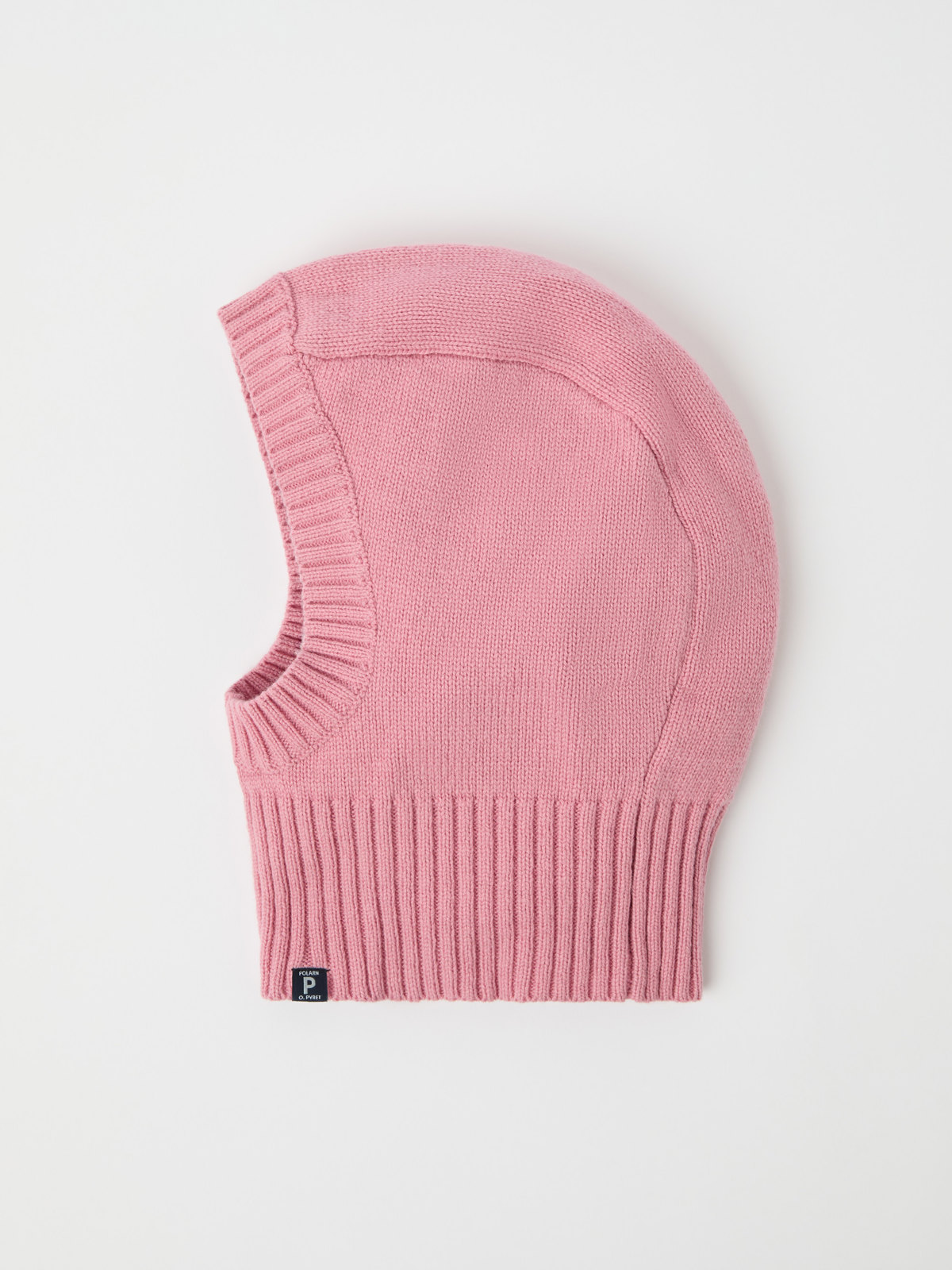Solid color balaclava in warm merino wool and cotton blend. Ideal for winter adventures or skiing trips! Ribbed trim around the face and neck for a comfy fit.