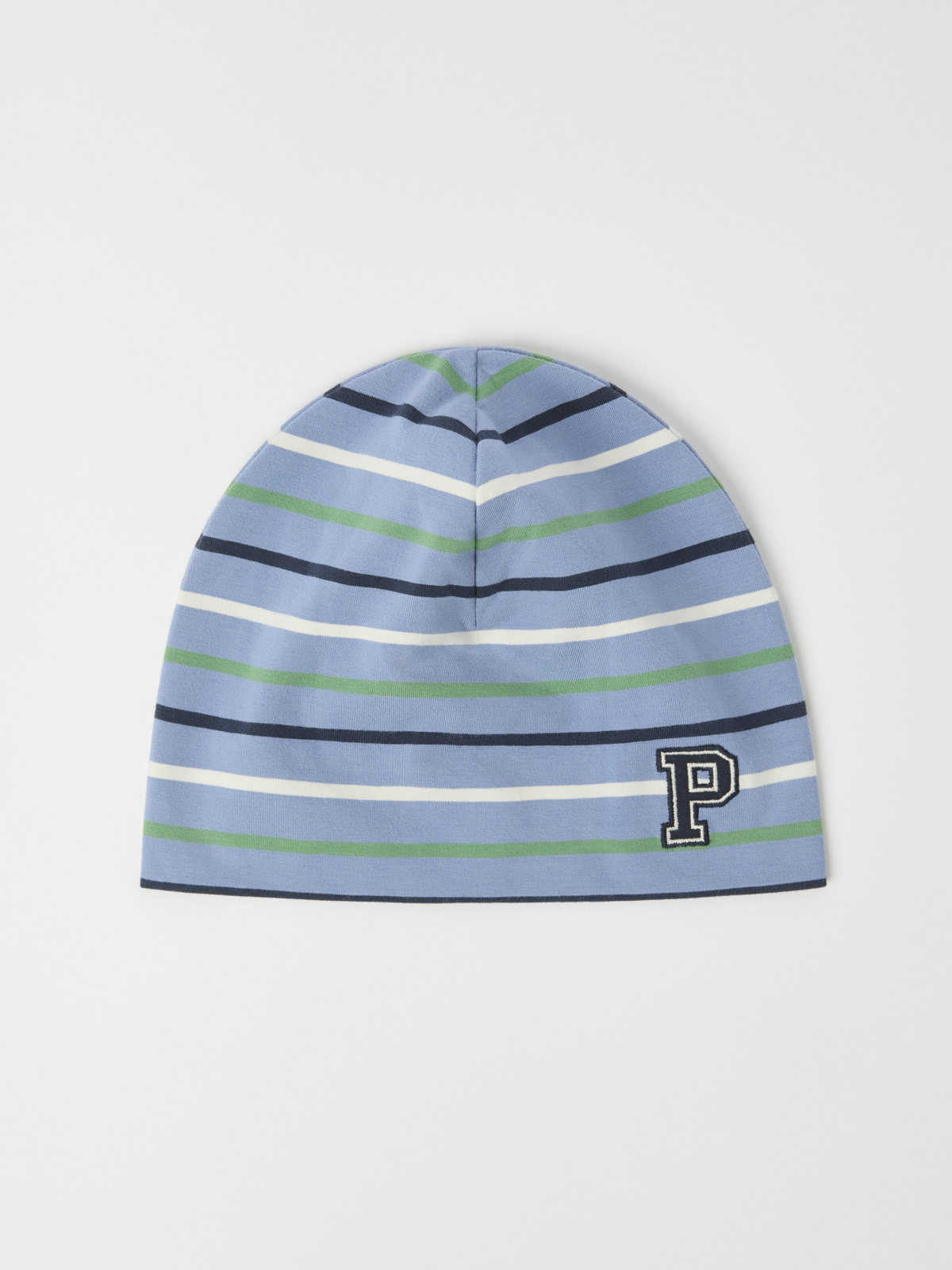 A thin, multi-stripe beanie in soft, organic cotton jersey. The beanie features our classic stripes and a "P" appliqué on the front.