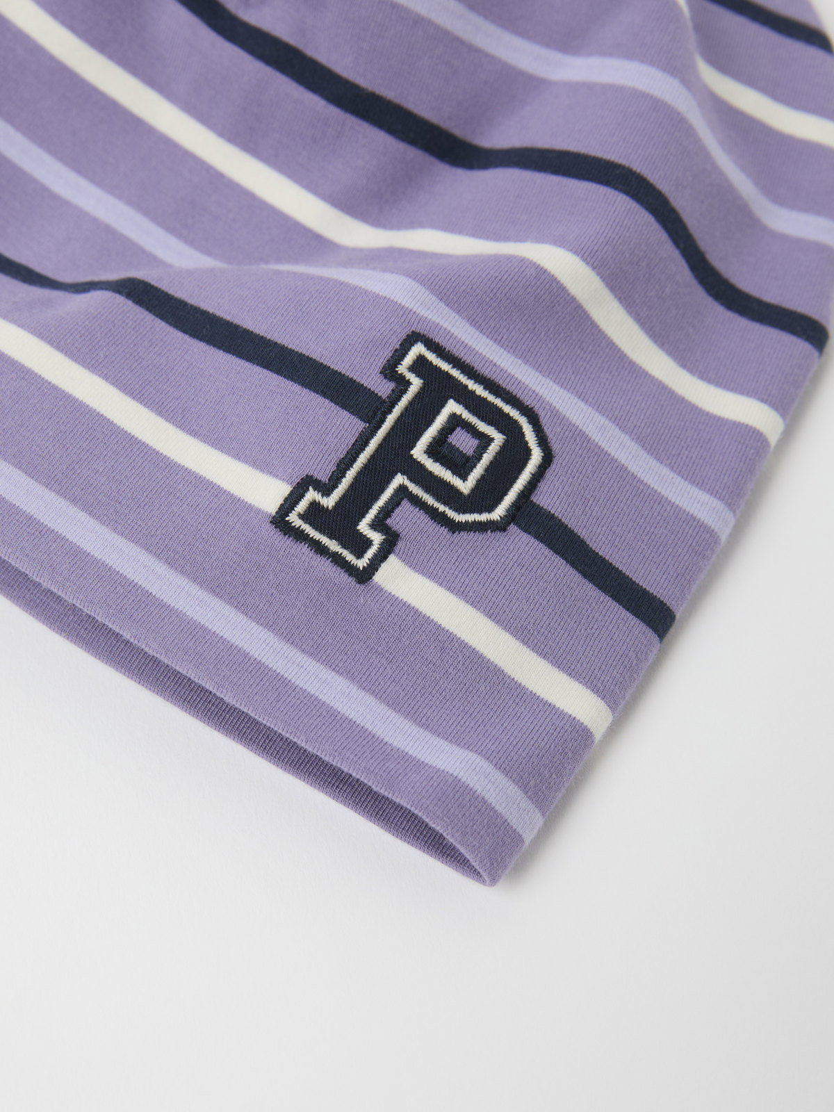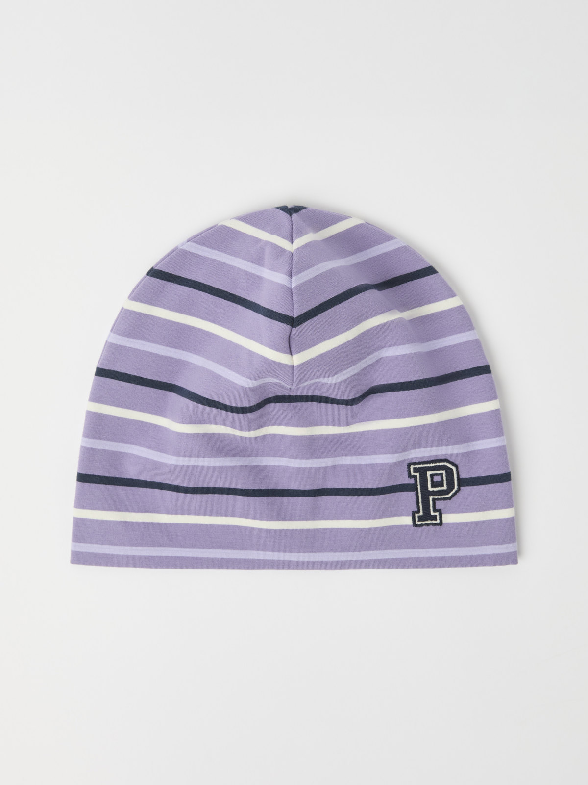 A thin, multi-stripe beanie in soft, organic cotton jersey. The beanie features our classic stripes and a "P" appliqué on the front.