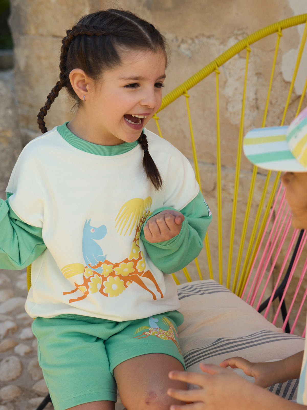 Shorts in soft sweatshirt fabric in 100% organic cotton – a perfect everyday garment for the summer wardrobe! This product is part of our limited collection celebrating the Moomins’ 80th anniversary. Exclusive for the 2025 anniversary, the Moomins are once again appearing in colour – for the first time since 1956.