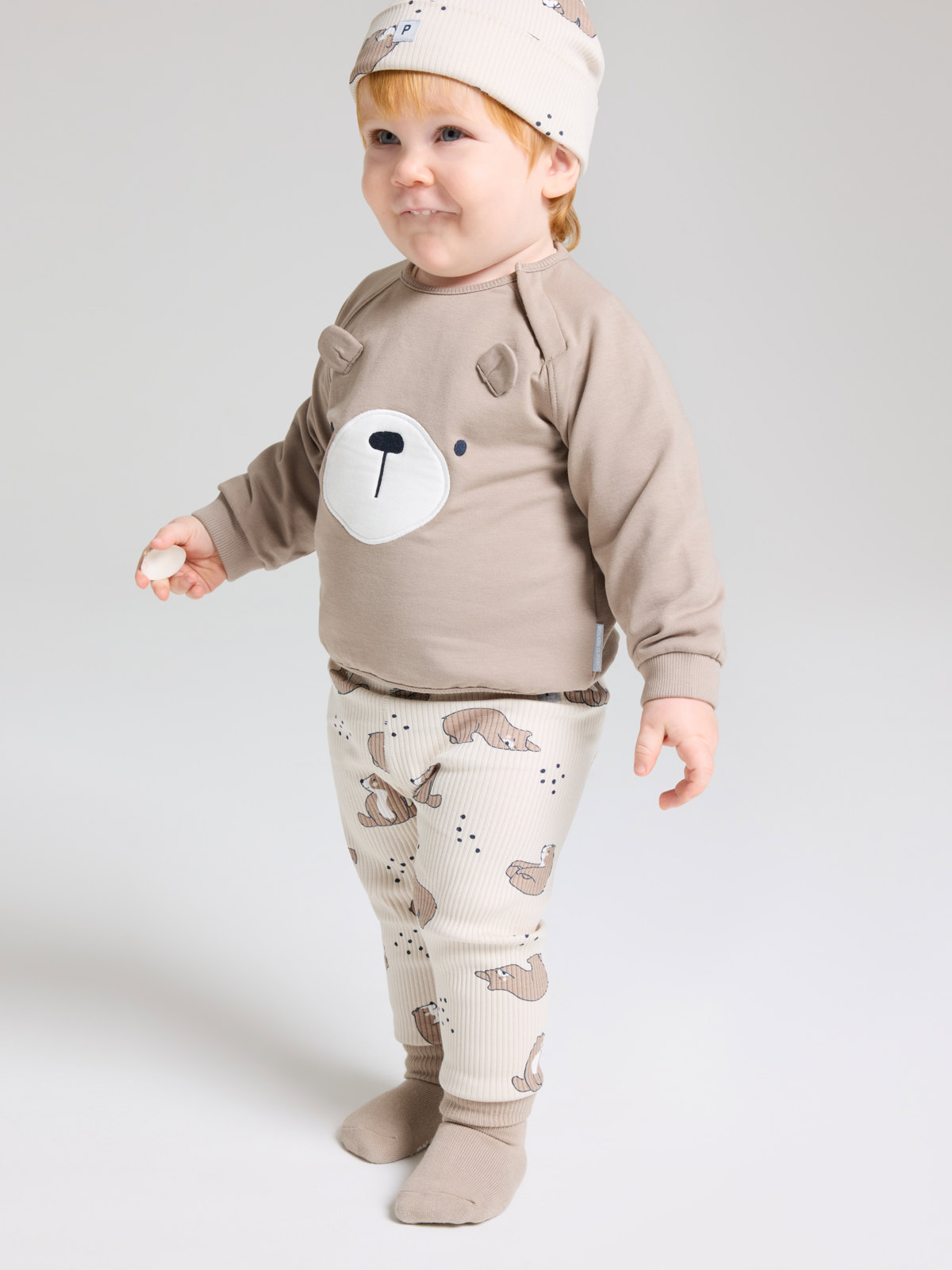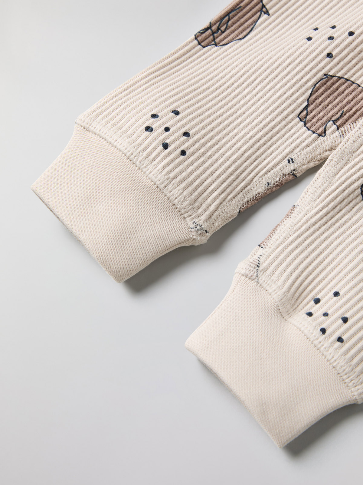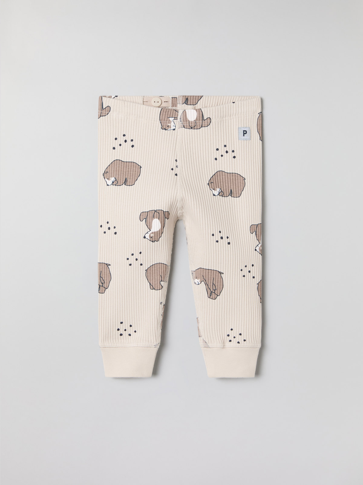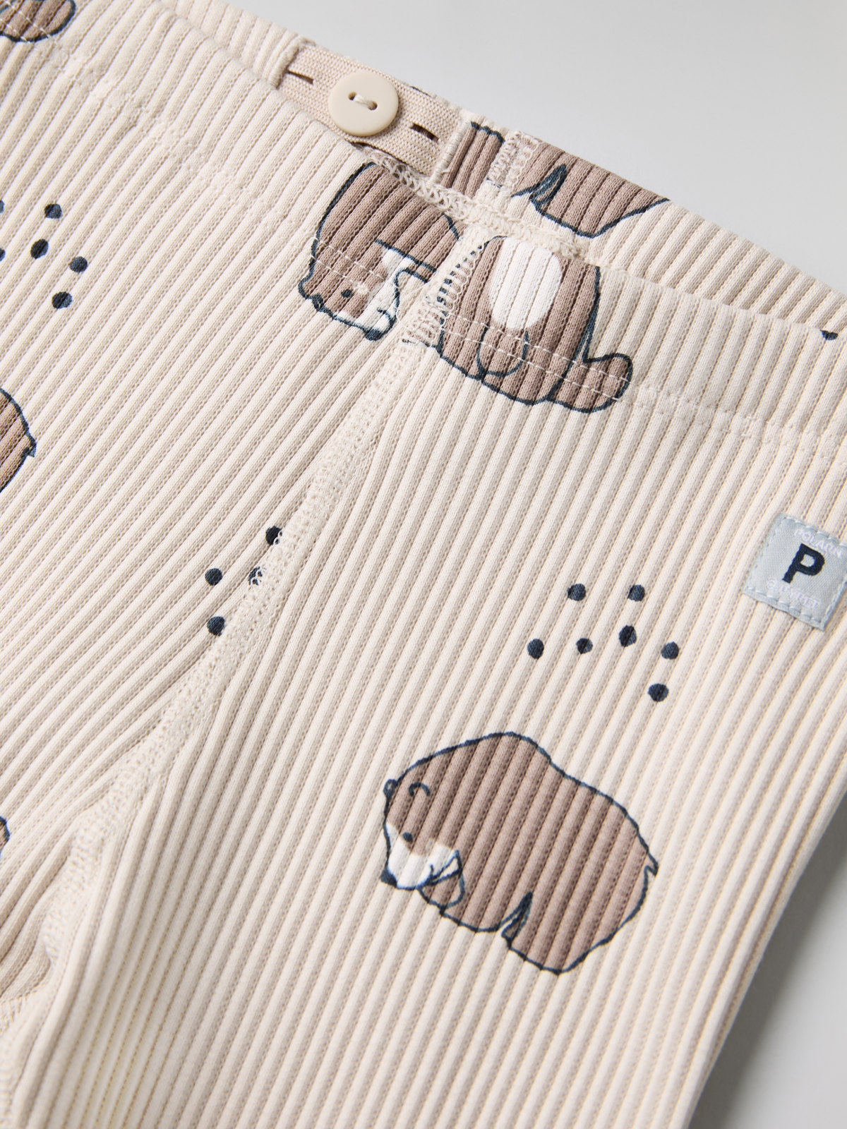 Ribbed pants in soft organic cotton for baby, with allover small lynx print.