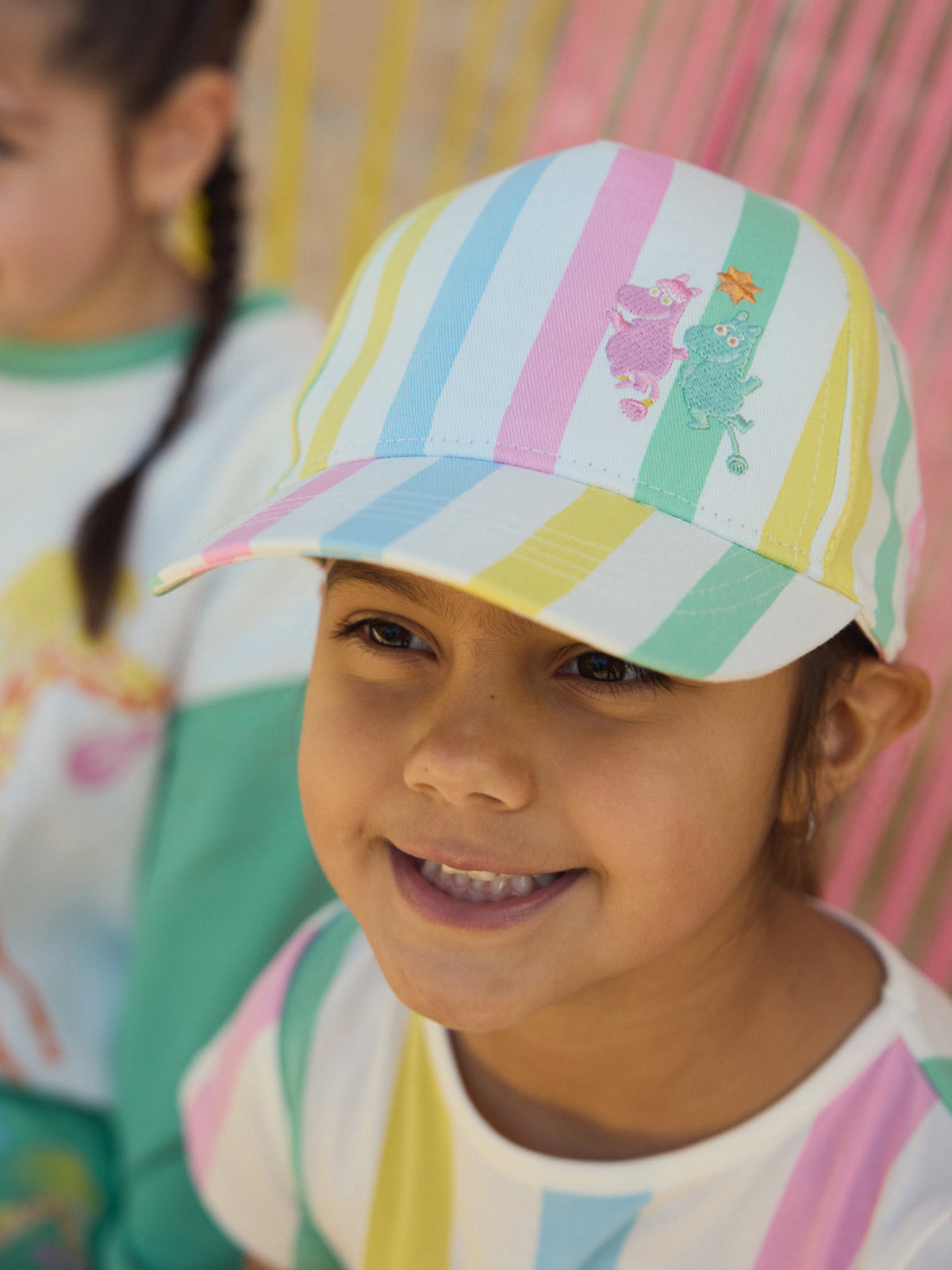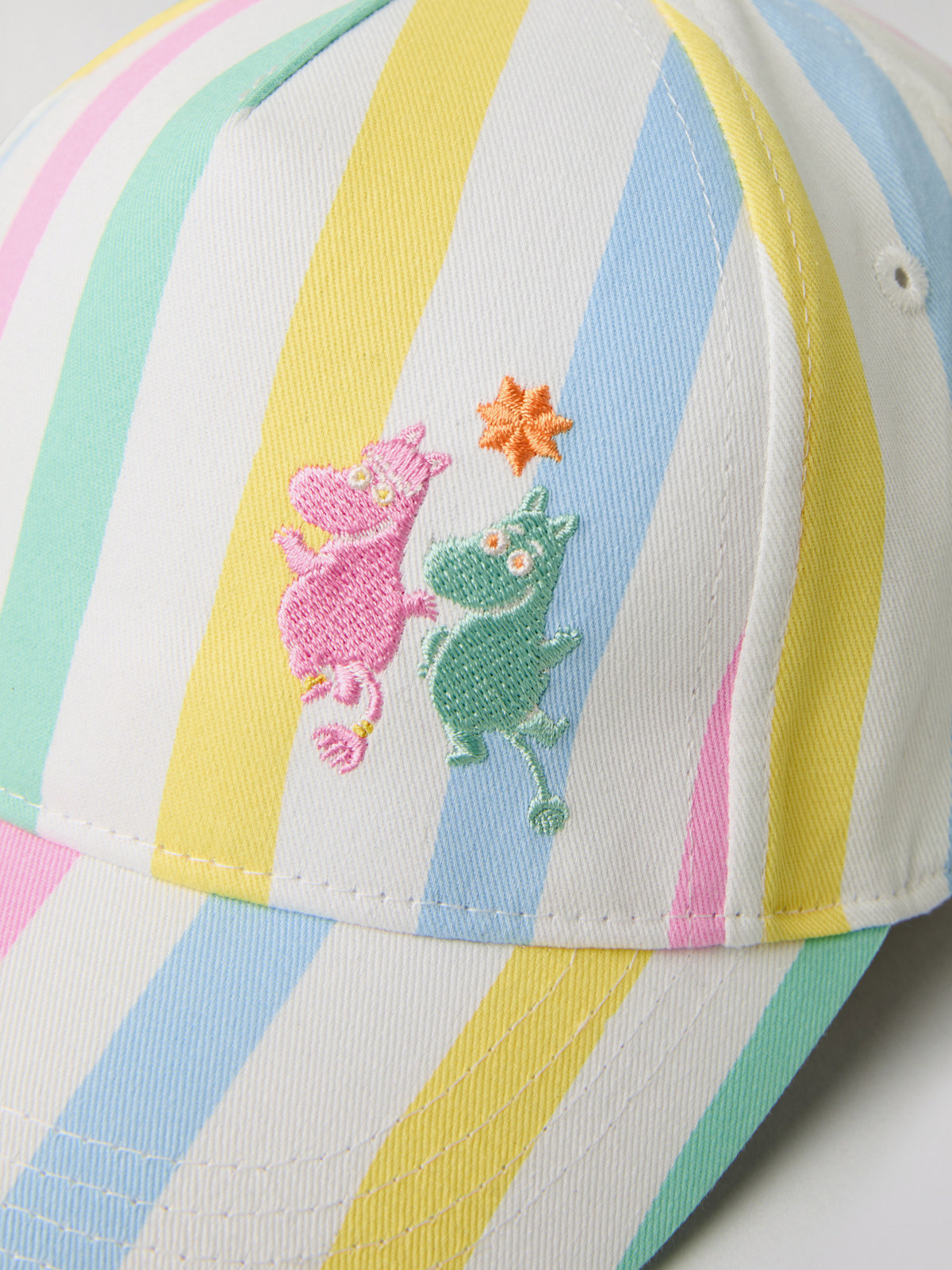 Classic cap in 100% organic cotton featuring illustrations from Tove Jansson’s Moomin stories. The cap has embroidered vent holes, and the size can be adjusted with Velcro at the back.