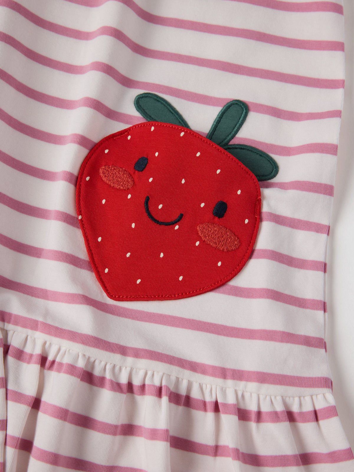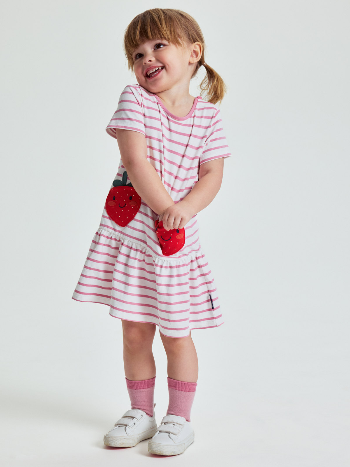 Short-sleeved dress in soft organic cotton with playful strawberry-shaped pockets – a summer favorite for everyday wear and parties! The dress features our classic stripes and a fancy ruffle hem.