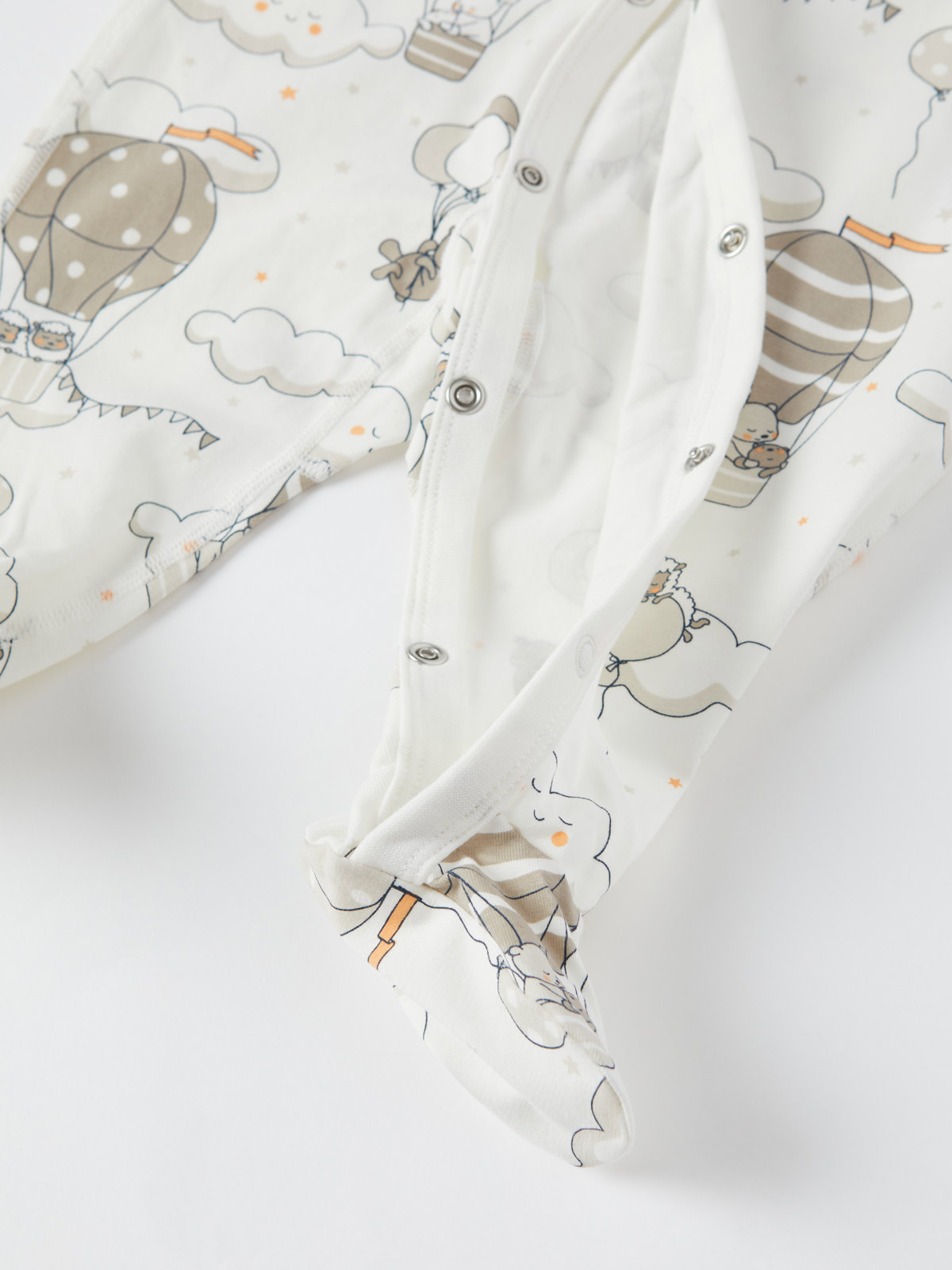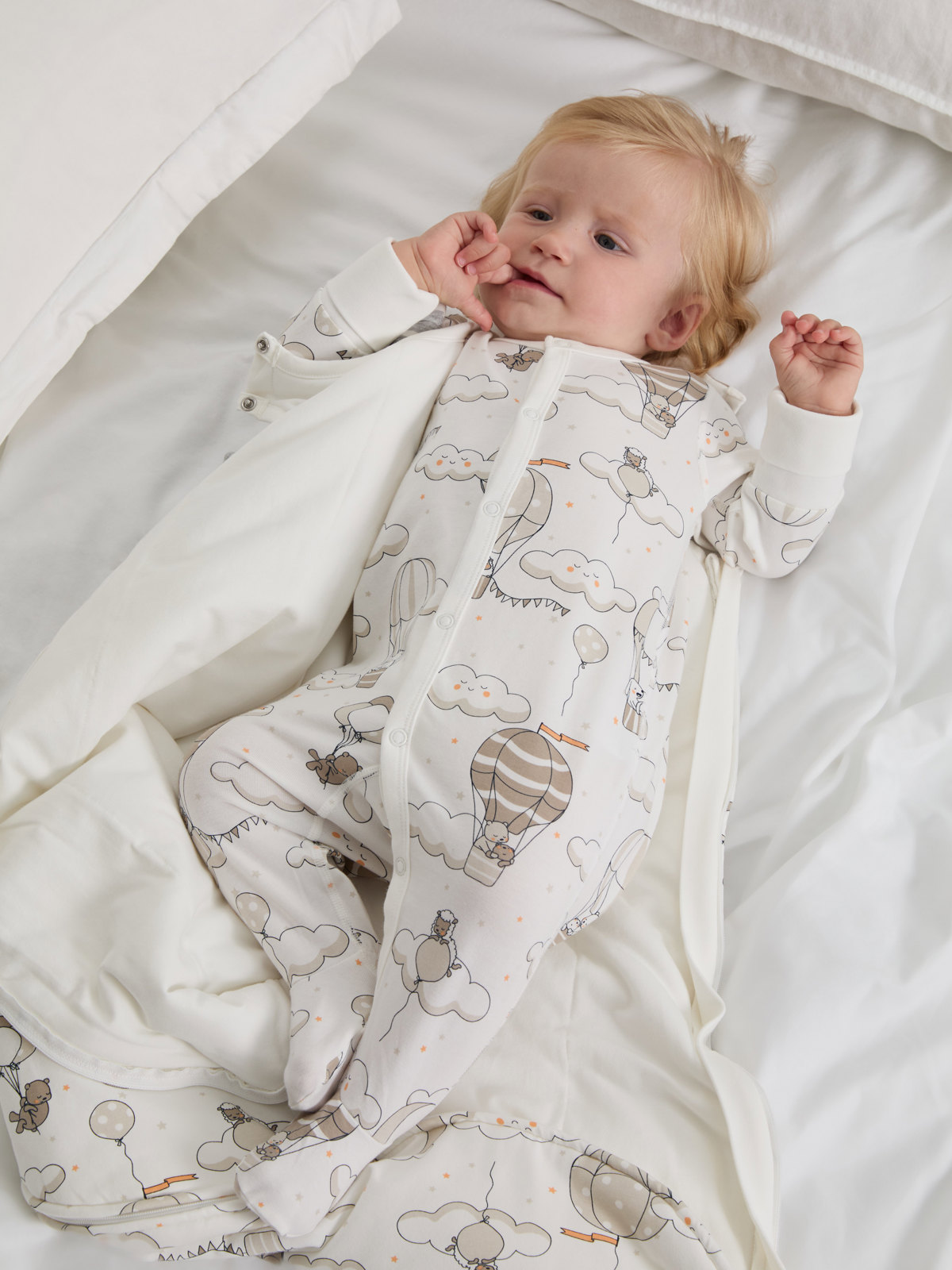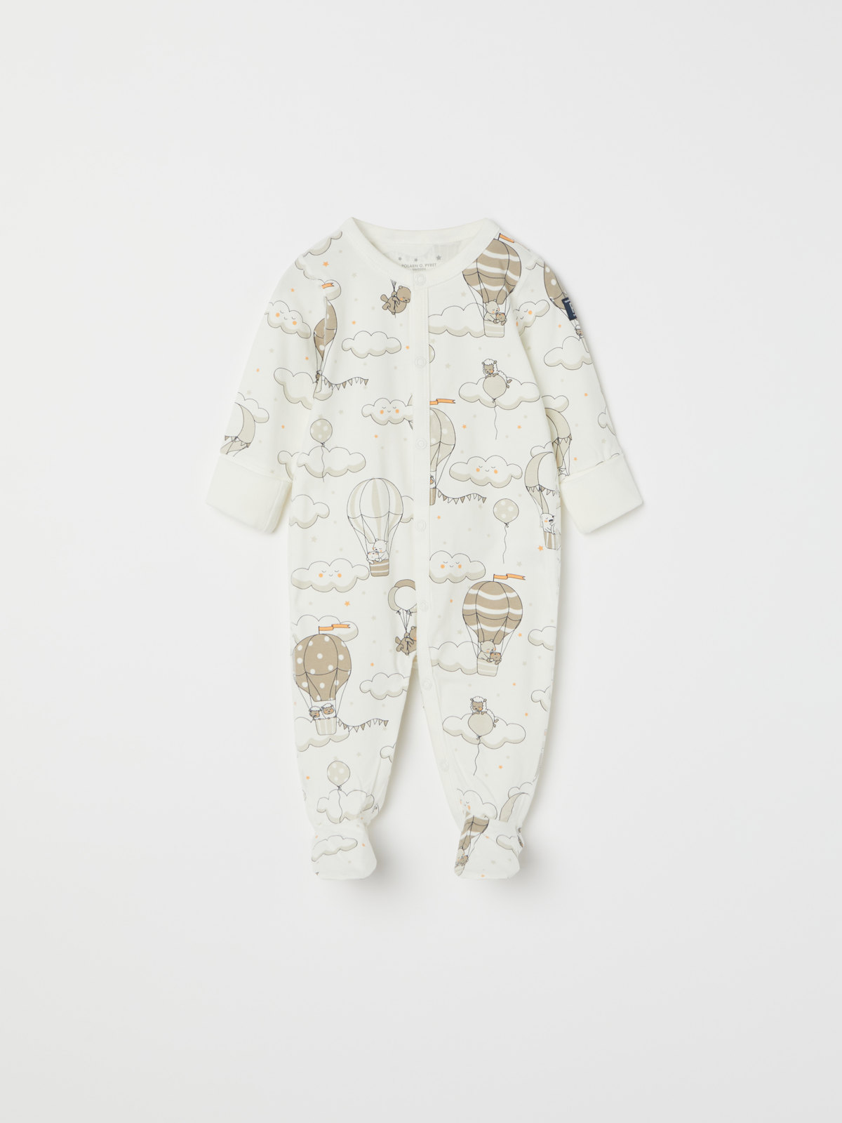 Onesie pajamas in soft, organic cotton made for the littlest ones. The onesie has a pretty balloon print.