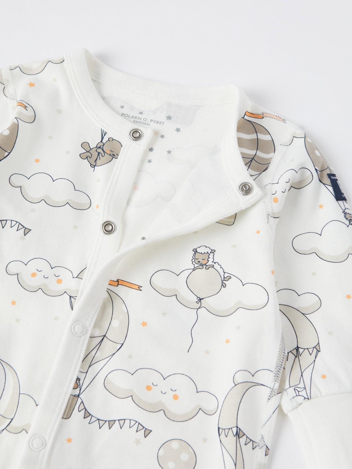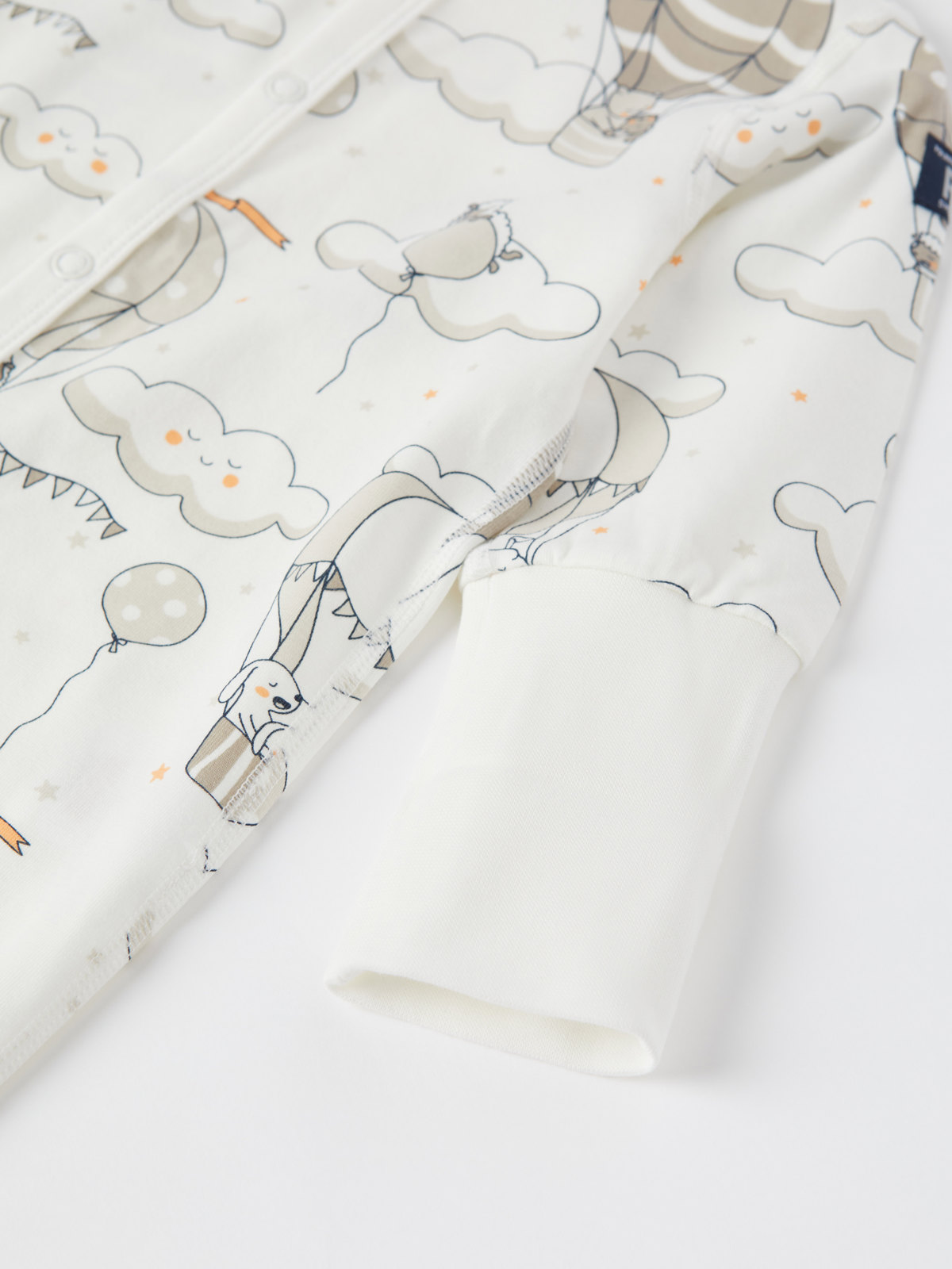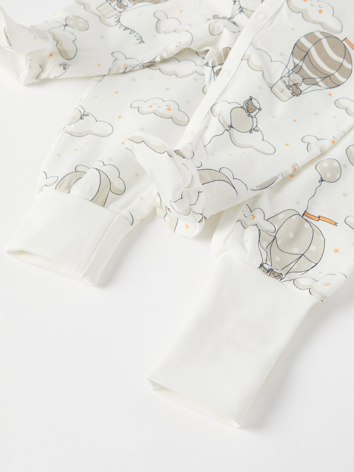 Onesie pajamas in soft, organic cotton made for the littlest ones. The onesie has a pretty balloon print.