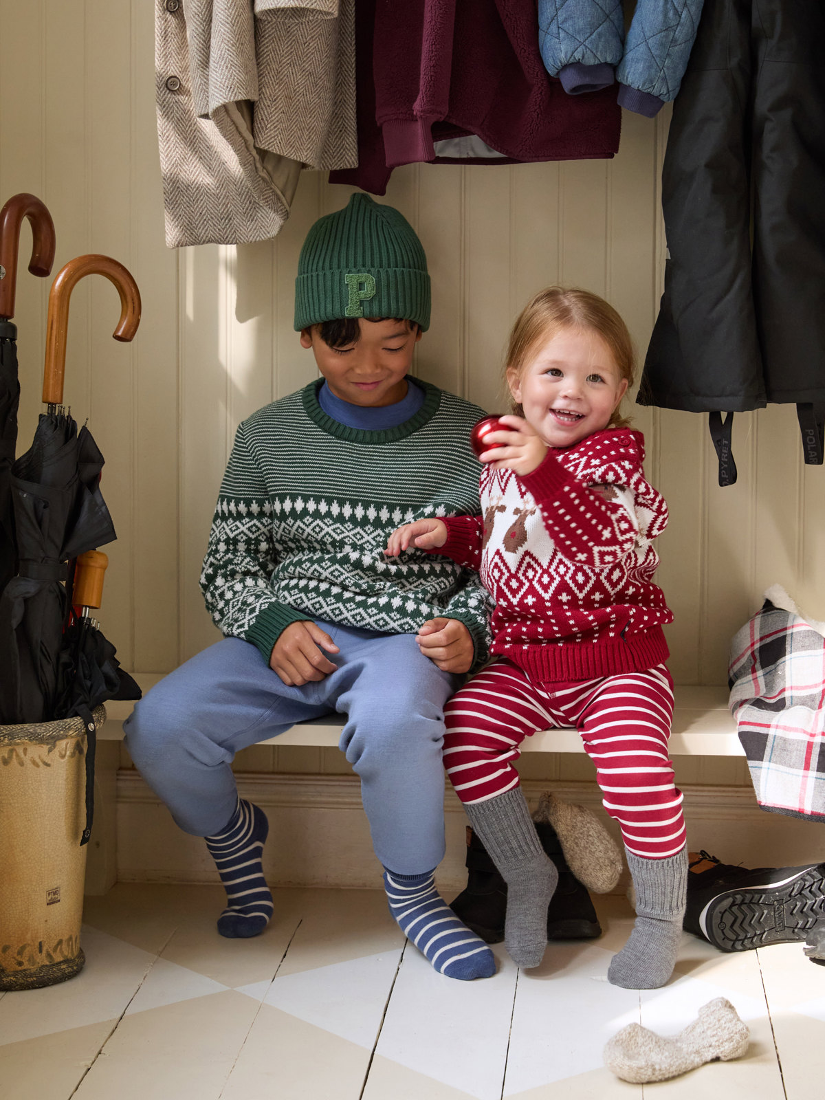 A jacquard-knit sweater with a lovely winter-inspired pattern in 100% organic cotton. The ultimate Christmas sweater!
