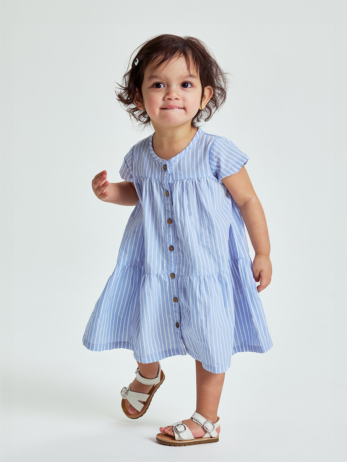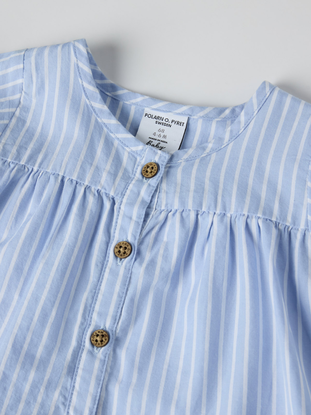 Striped, short-sleeved dress in soft organic cotton poplin for baby – perfect for both everyday wear and summer parties. The dress also has a button closure at the front.