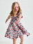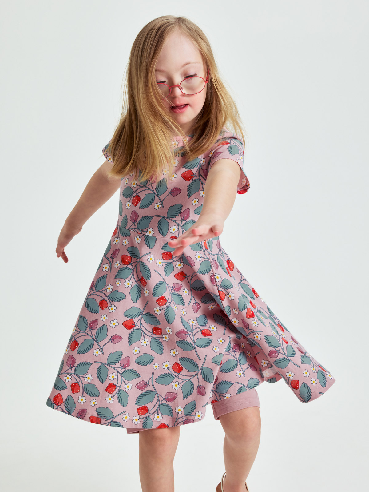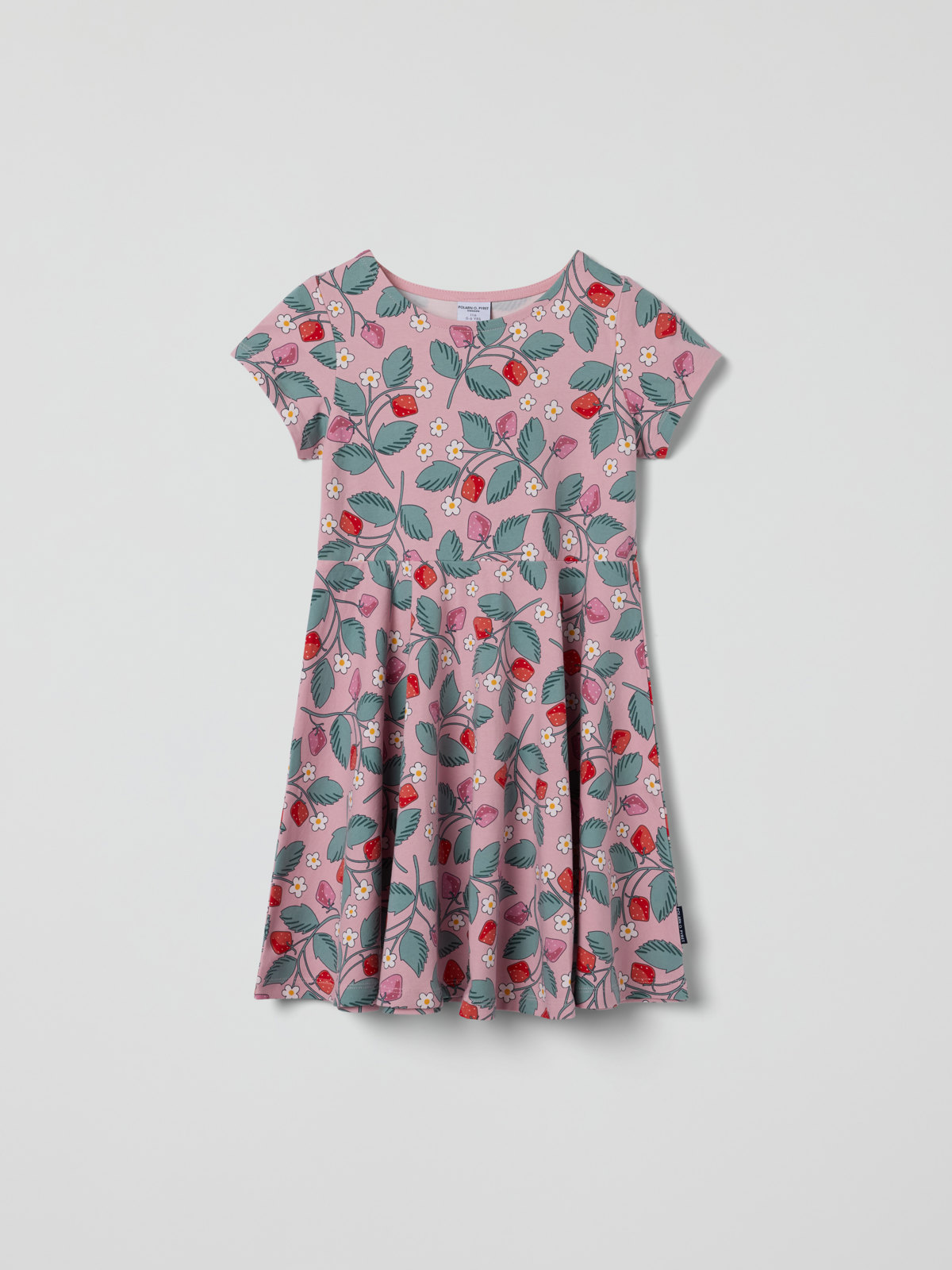 Short-sleeved twirl dress with strawberry print