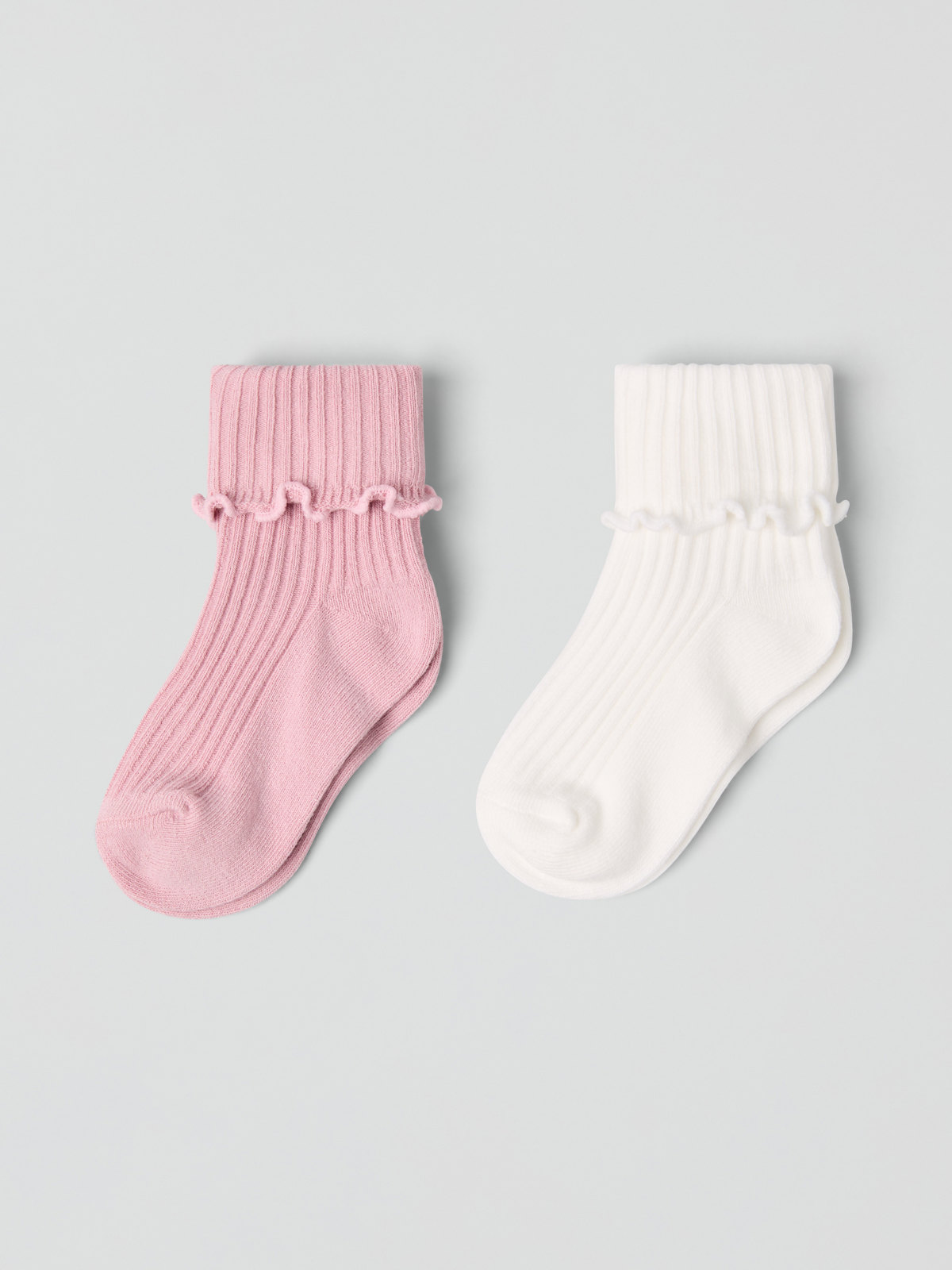2-pack of socks in soft organic cotton with a pretty lettuce trim for baby. The socks have soft, fold-over cuffs for a comfy fit and match other garments in our baby collection.