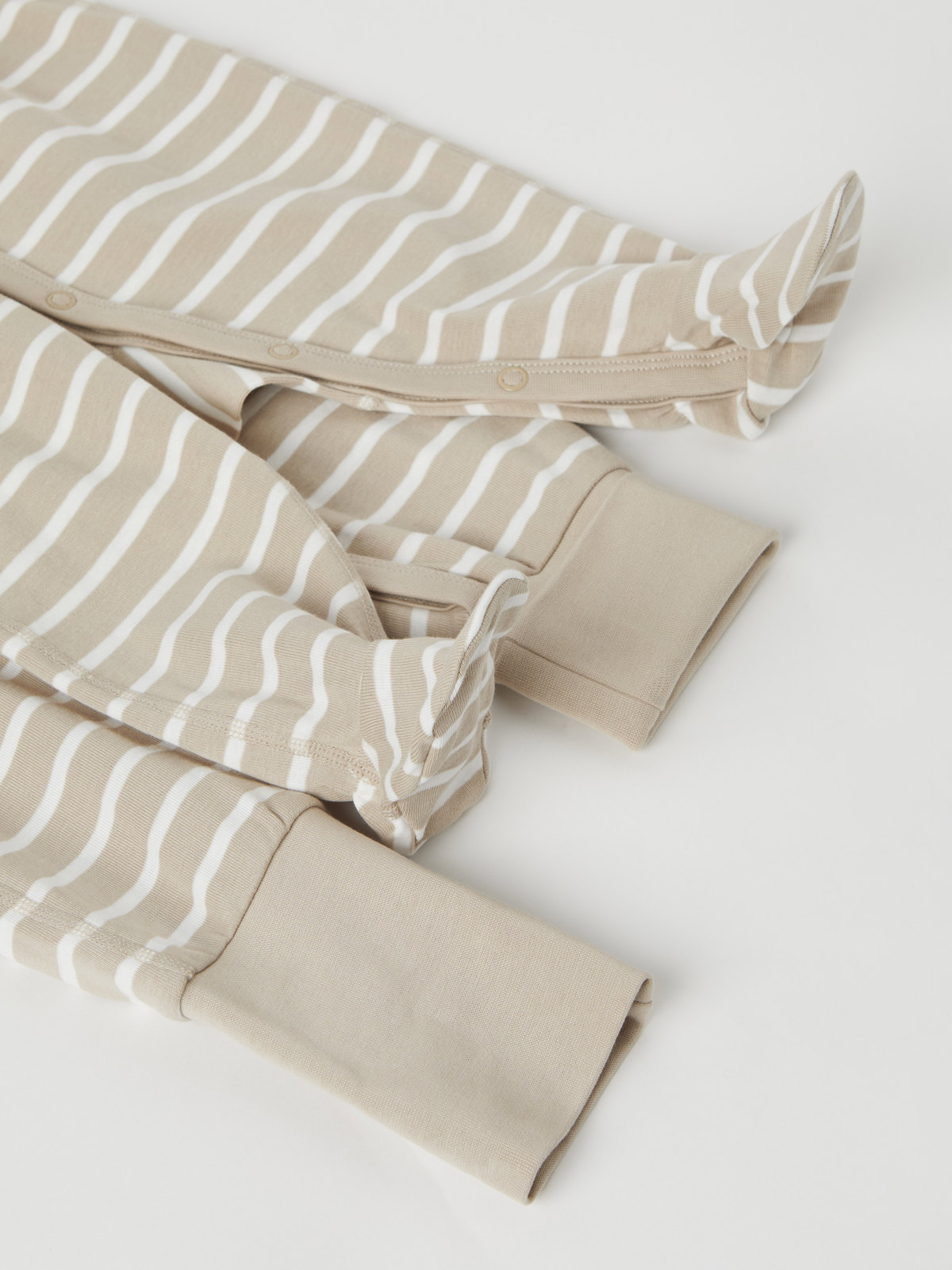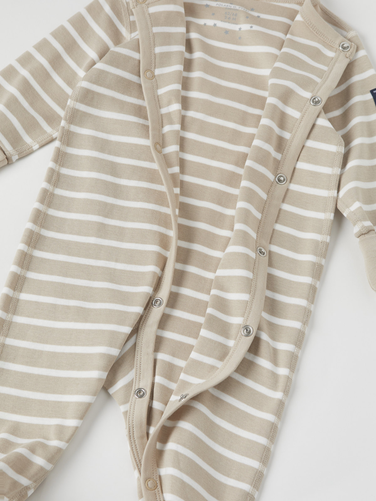 Your little one is sure to sleep soundly in these comfy onesie pyjamas. They are made of organic cotton and have extra soft seams that gently hug baby's delicate skin. The extra long wrist and ankle cuffs can be folded down as the child grows. Neck-to-ankle snaps to facilitate dressing. Sizes 50/56-62/68 have integral feet.