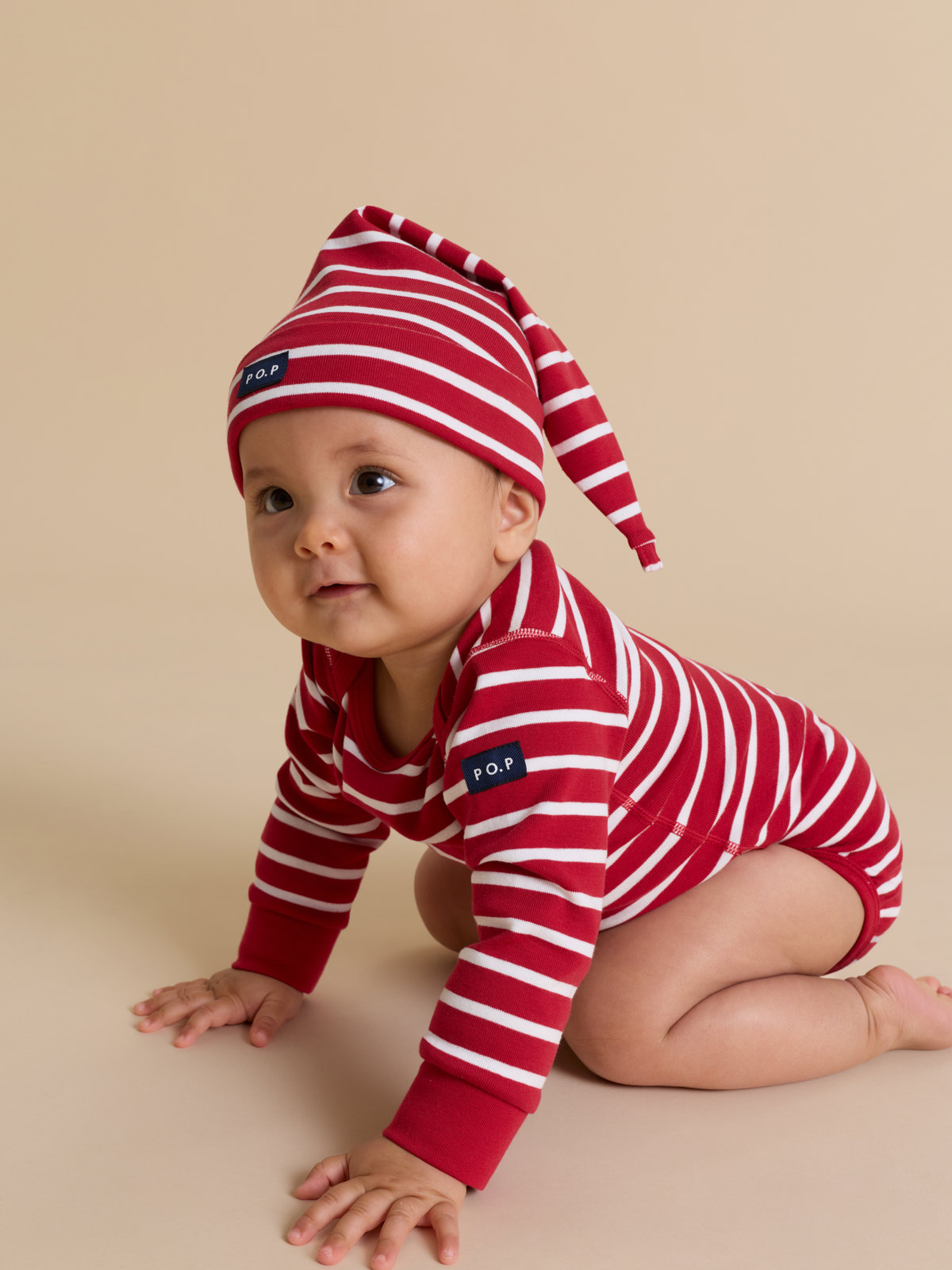 Soft and comfy babygrow in 100% organic cotton. A perfect wardrobe staple! It features our classic stripes and an envelope neckline, making it easy to slip over baby’s head. It also has soft, ribbed cuffs.