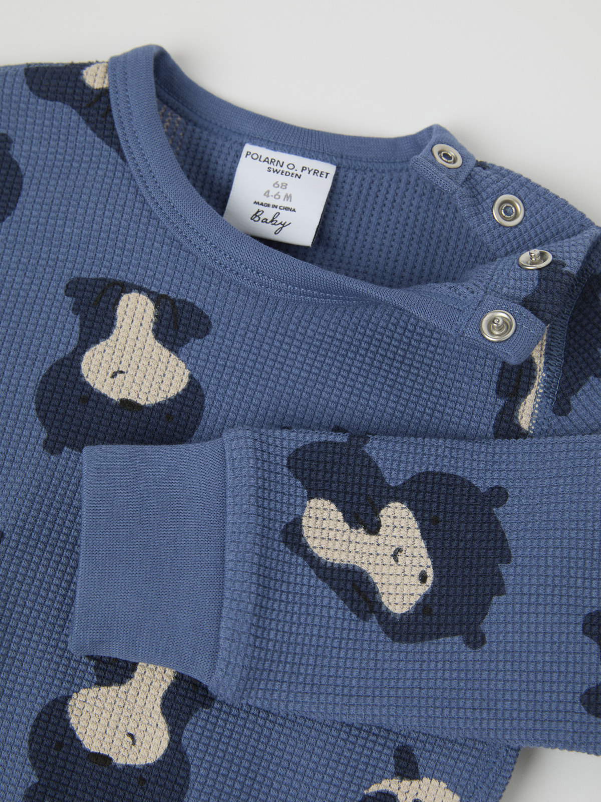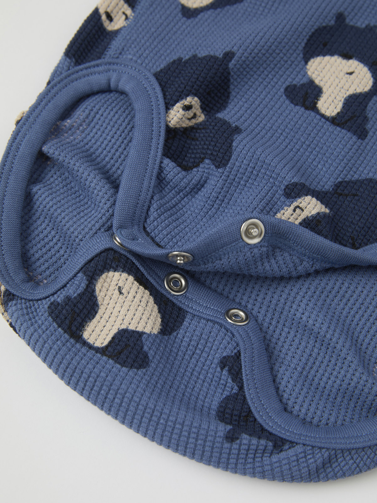 Waffle bodysuit in soft organic cotton for baby. The bodysuit has an allover small bear print.