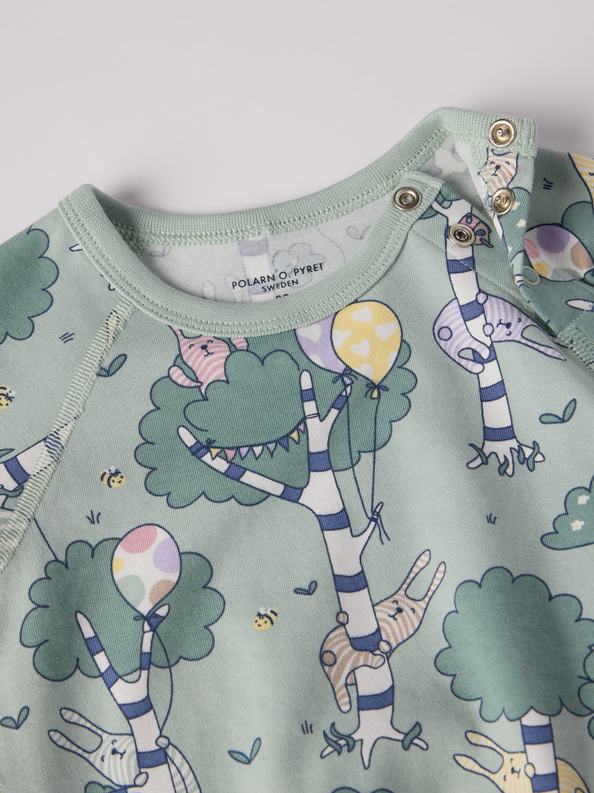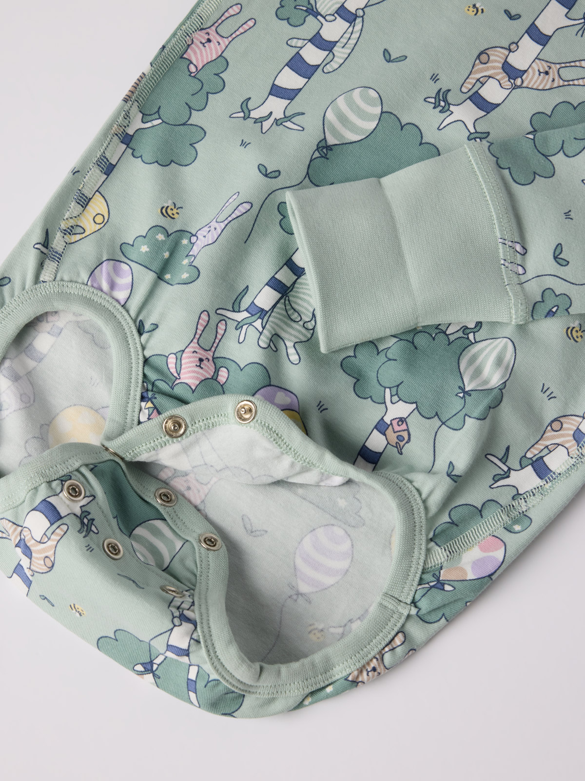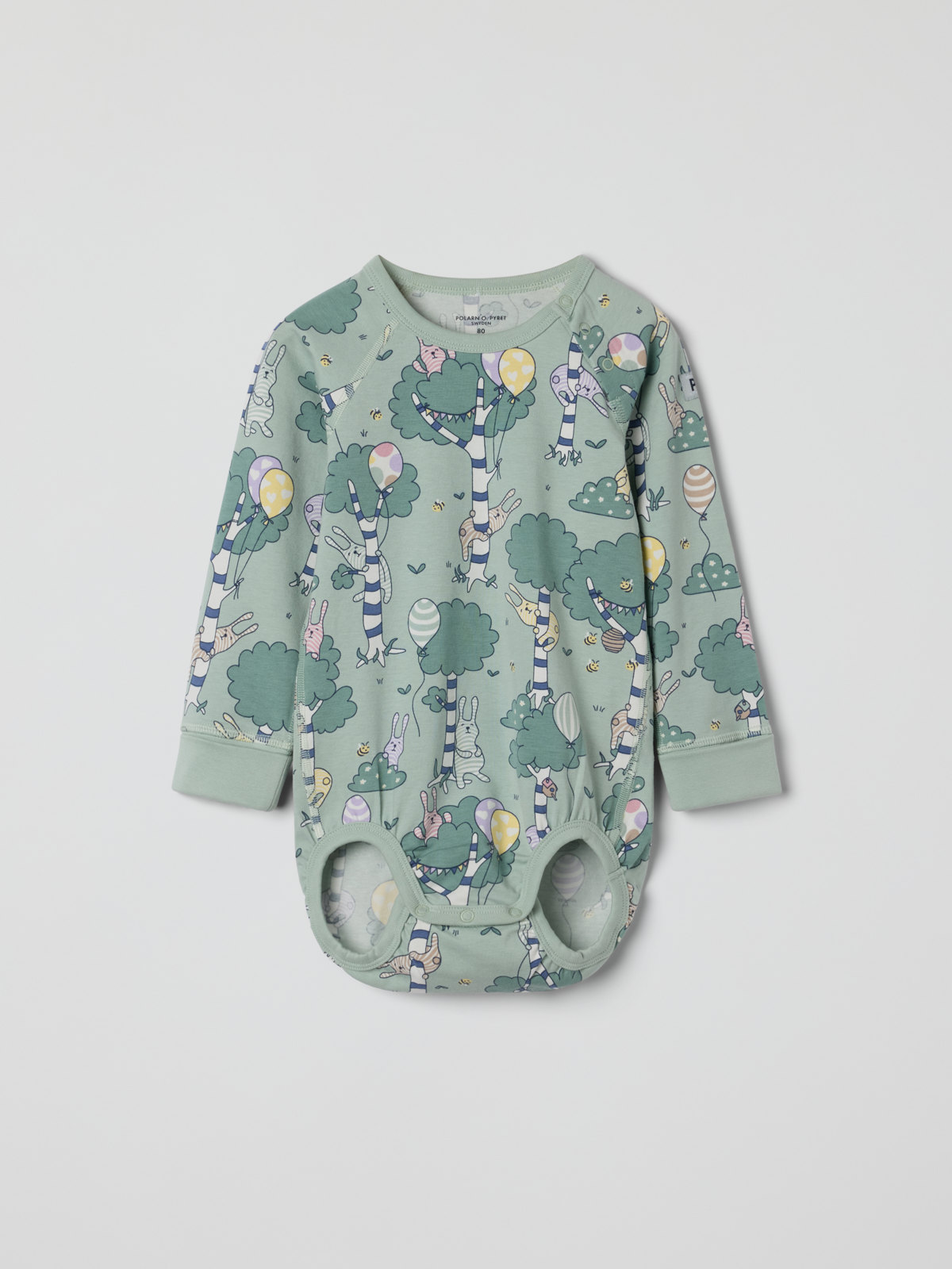 Bodygrow in 100% organic cotton with a delightful forest print. Thanks to the clever solution with an extra row of snaps at the crotch and fold-down cuffs, the bodysuit can grow with the baby!