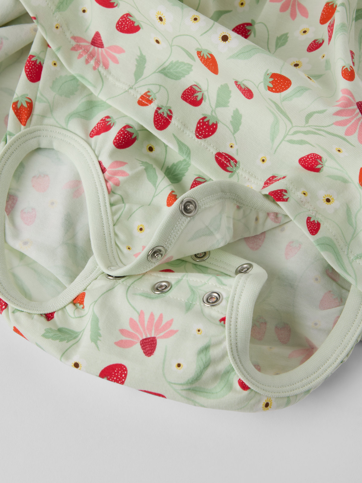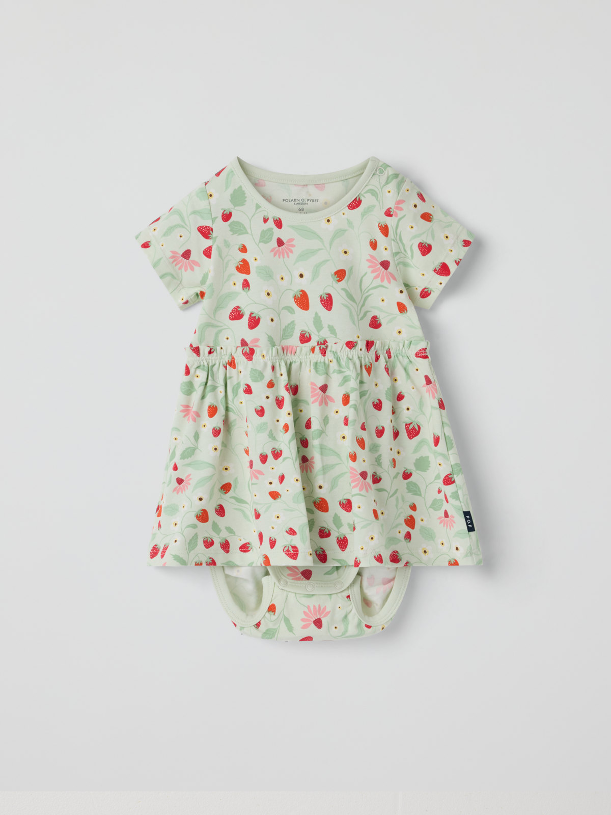 Short-sleeved dress bodysuit in soft organic cotton for the tiniest ones – ideal for both playtime and parties! The dress bodysuit features an all-over strawberry pattern and hidden poppers on one shoulder. Poppers at the crotch make dressing and nappy changes easy.