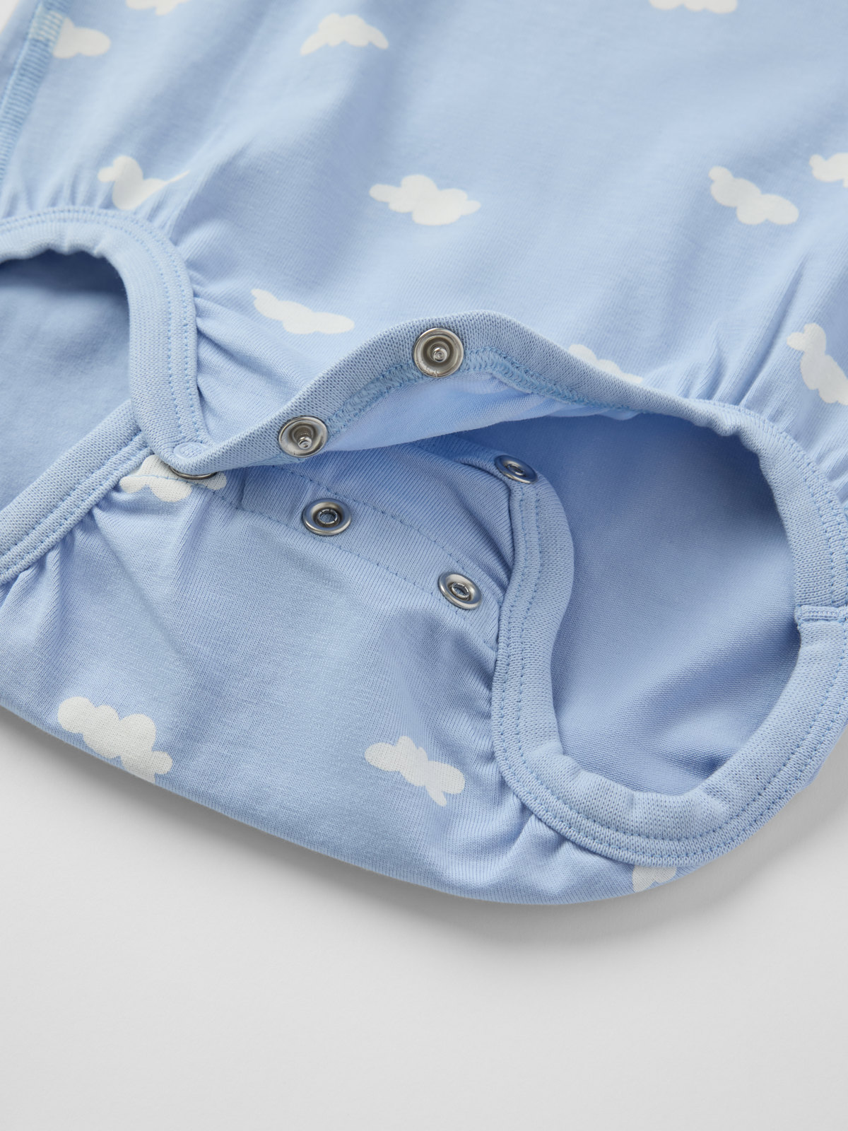 Babygrow in organic cotton. Thanks to the clever solution featuring an extra row of snaps at the crotch and fold-down cuffs, this bodysuit can grow with baby.
