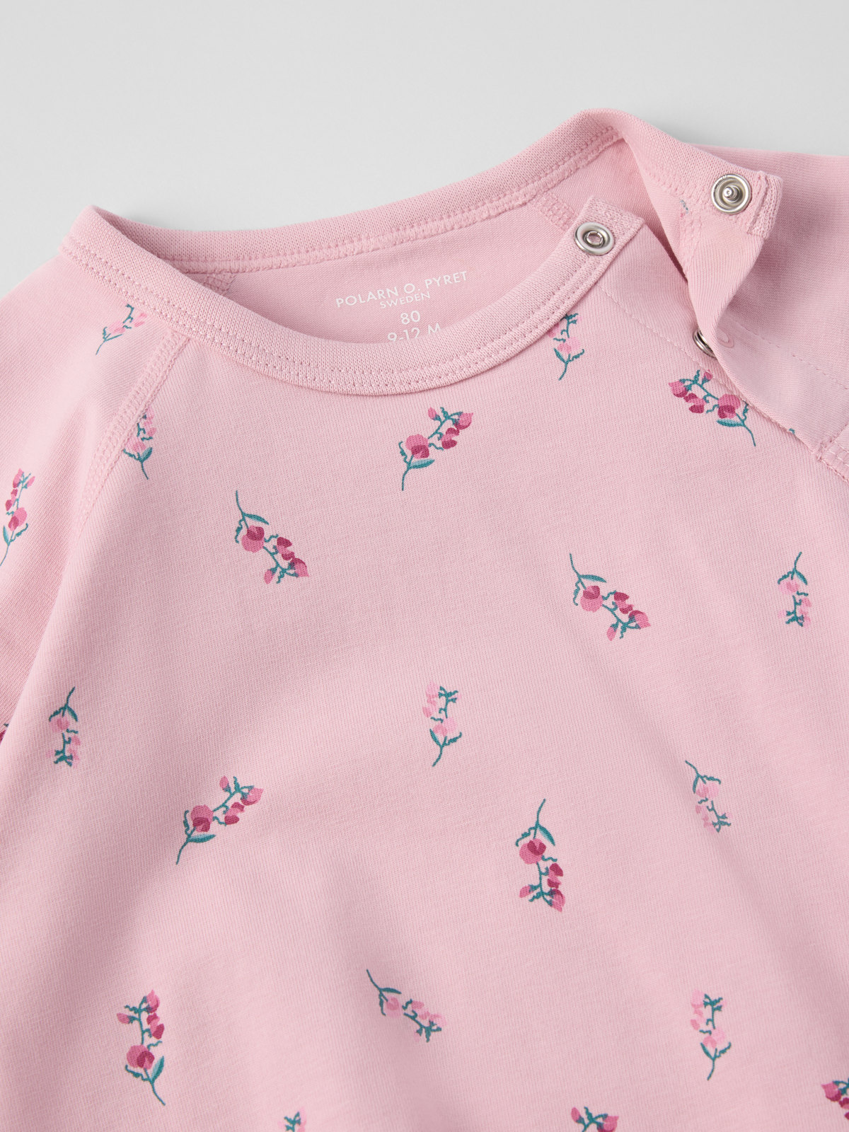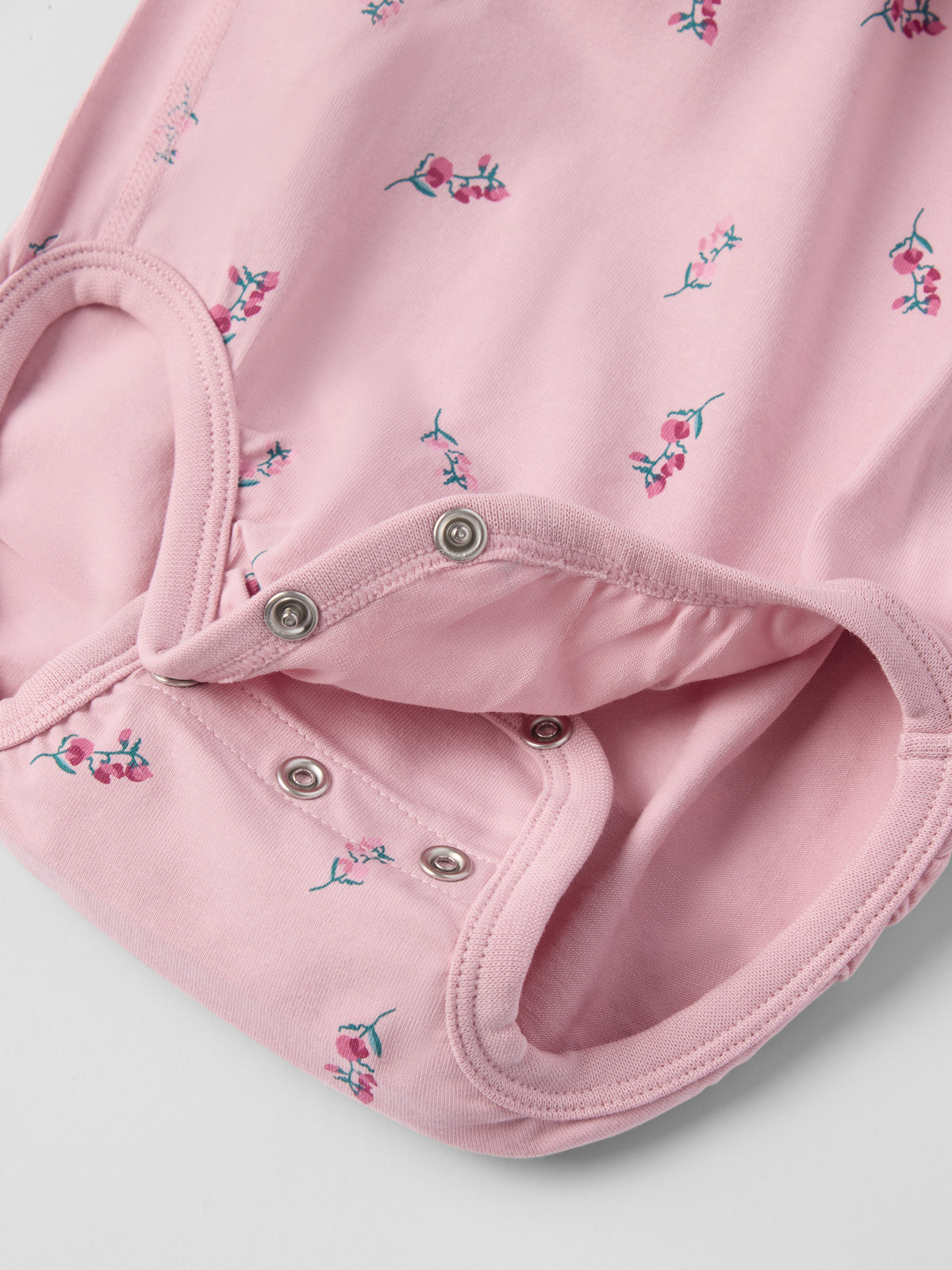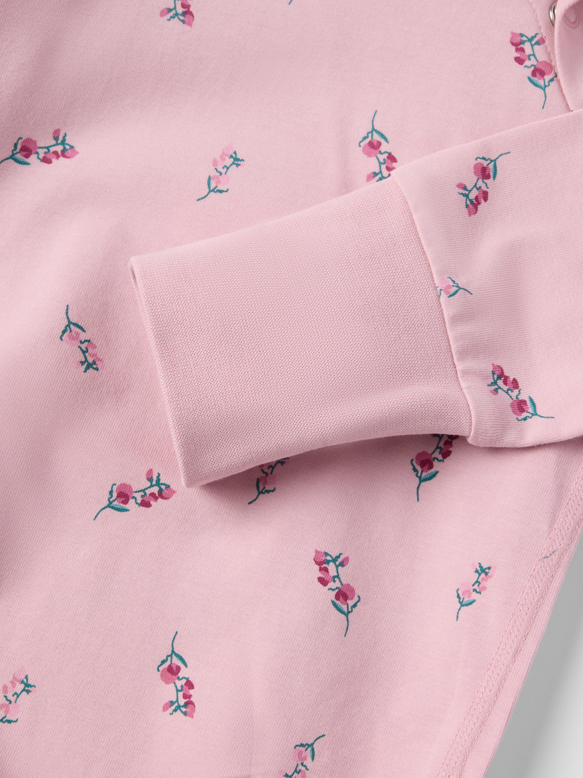 Babygrow in 100% organic cotton. Thanks to the clever solution featuring an extra row of snaps at the crotch and fold-down cuffs, this babygrow can grow with your little one.