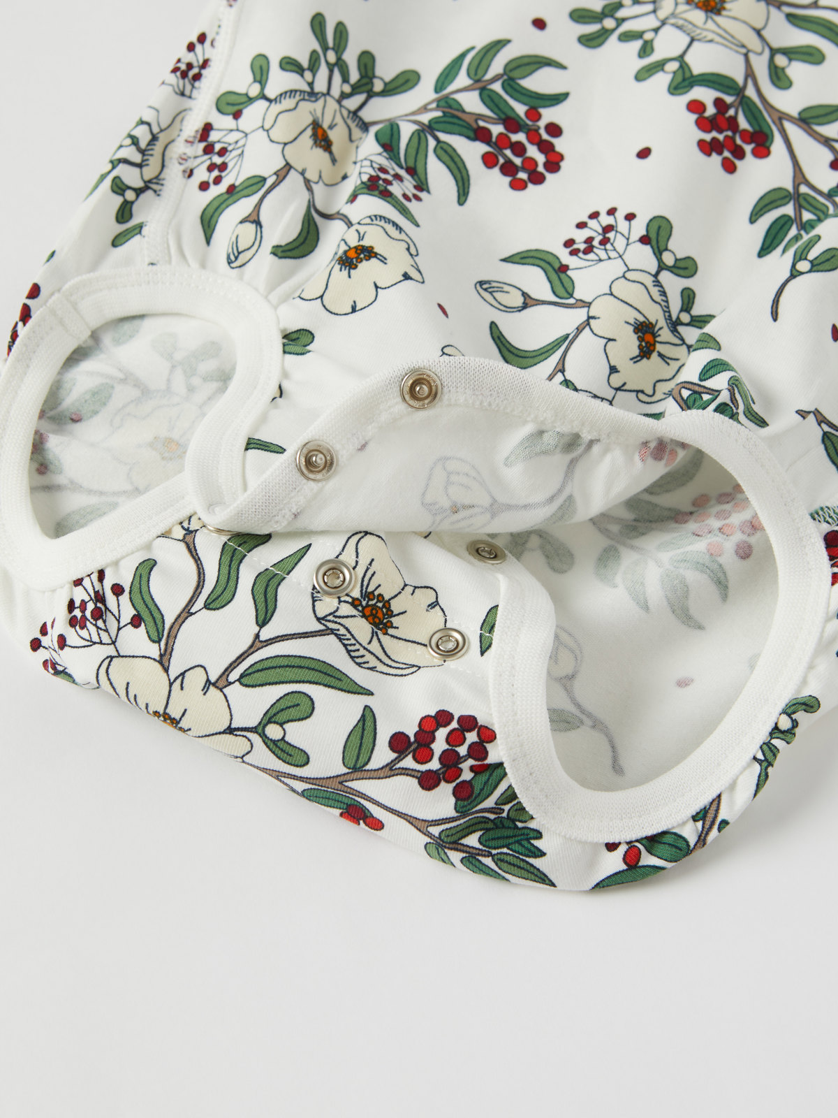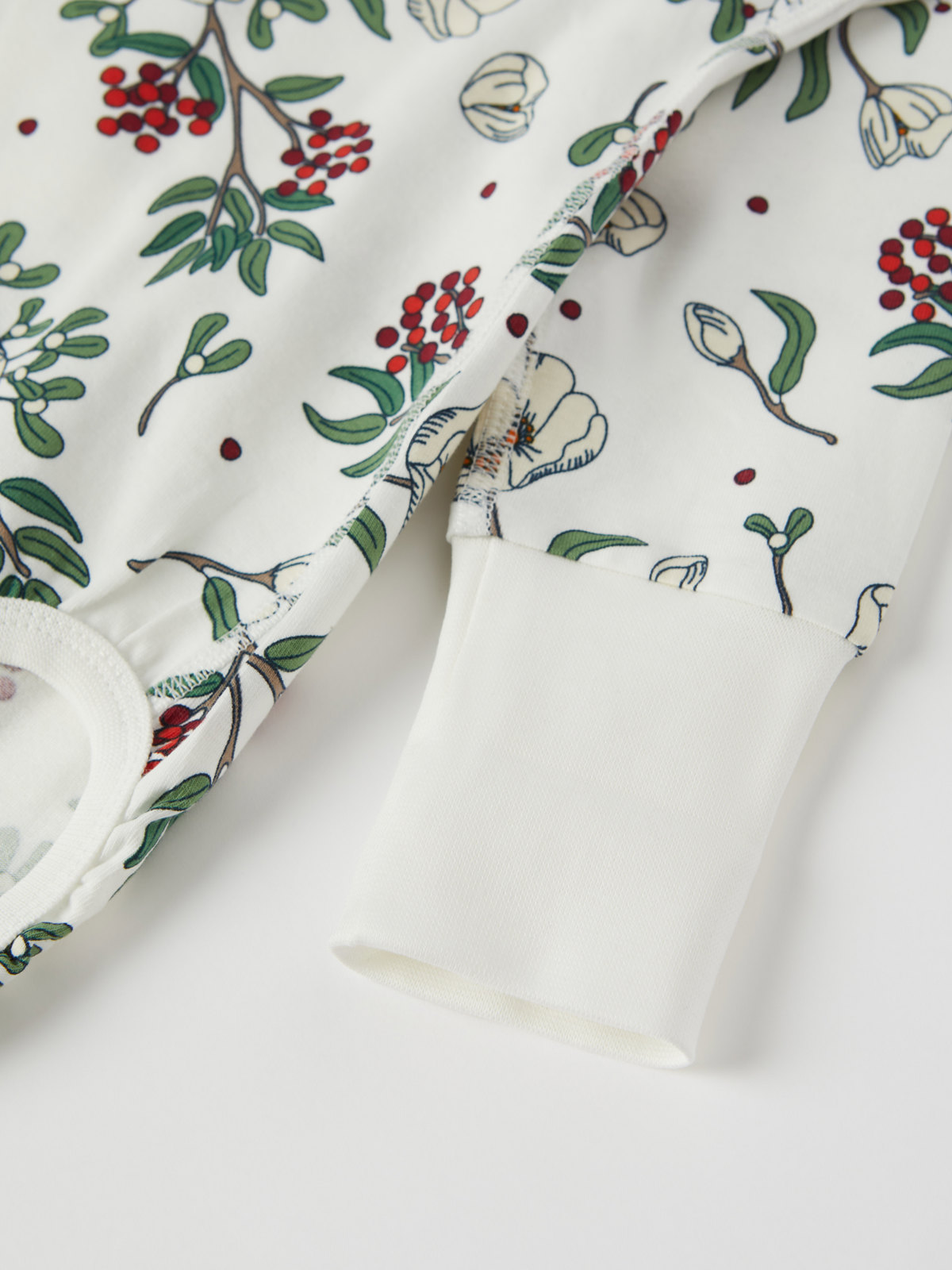 Babygrow in 100% organic cotton. Thanks to the clever solution with an extra row of snaps at the crotch and fold-down cuffs, the bodysuit can grow with the baby!