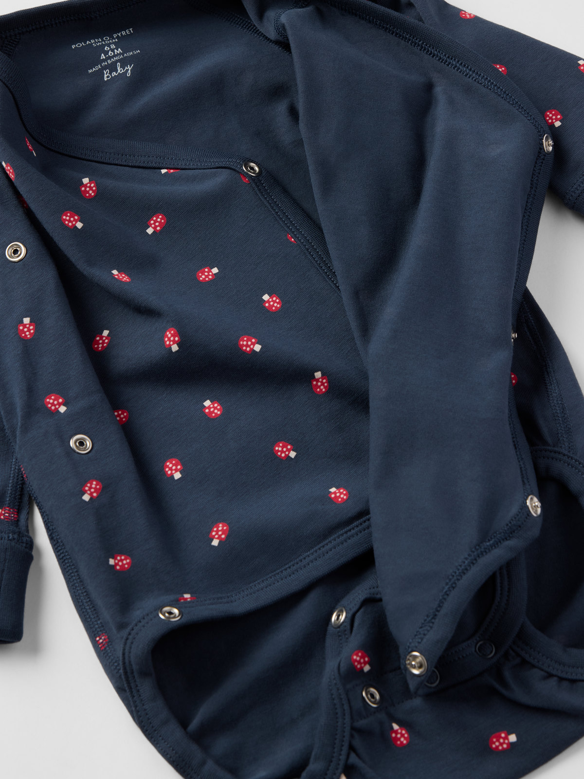 Wraparound babygrow in 100% organic cotton. Thanks to the clever solution featuring an extra row of snaps at the crotch and fold-down cuffs, this babygrow can grow with your little one.