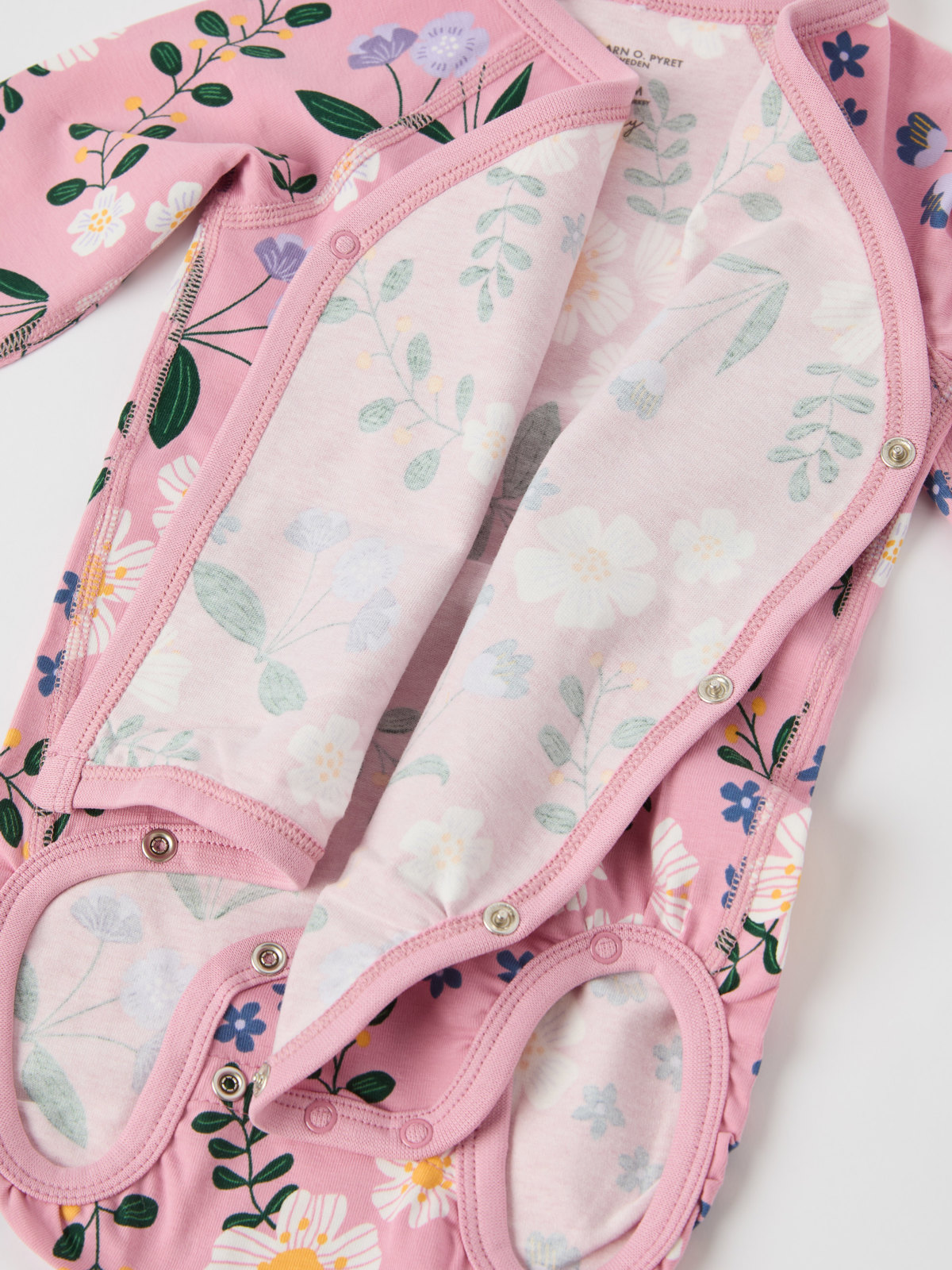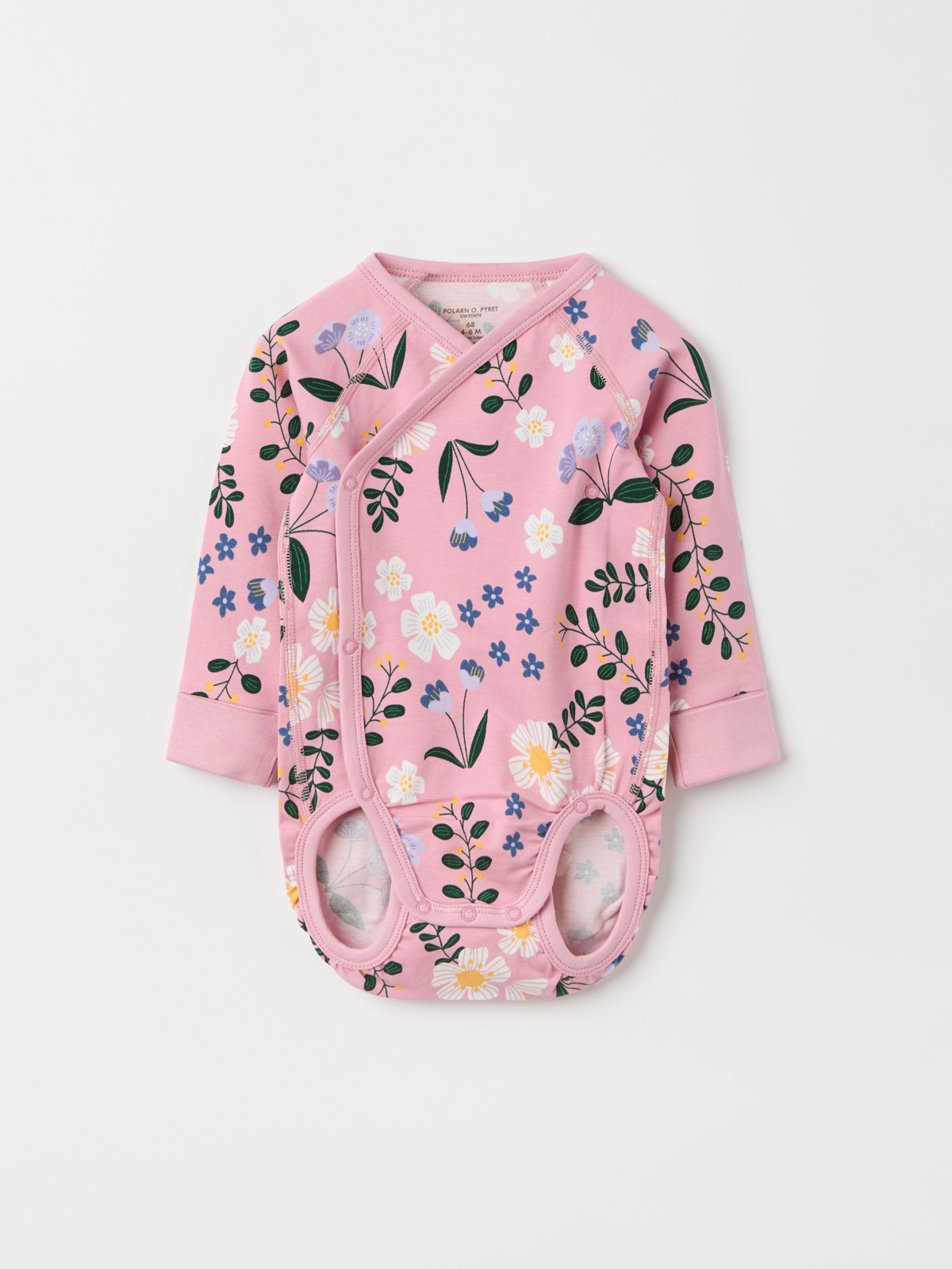 Wraparound babygrow in 100% organic cotton. Thanks to the clever solution of an extra row of snaps at the crotch and fold-down cuffs, the bodysuit can grow with your baby!
