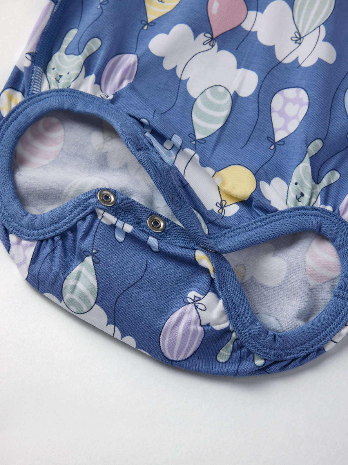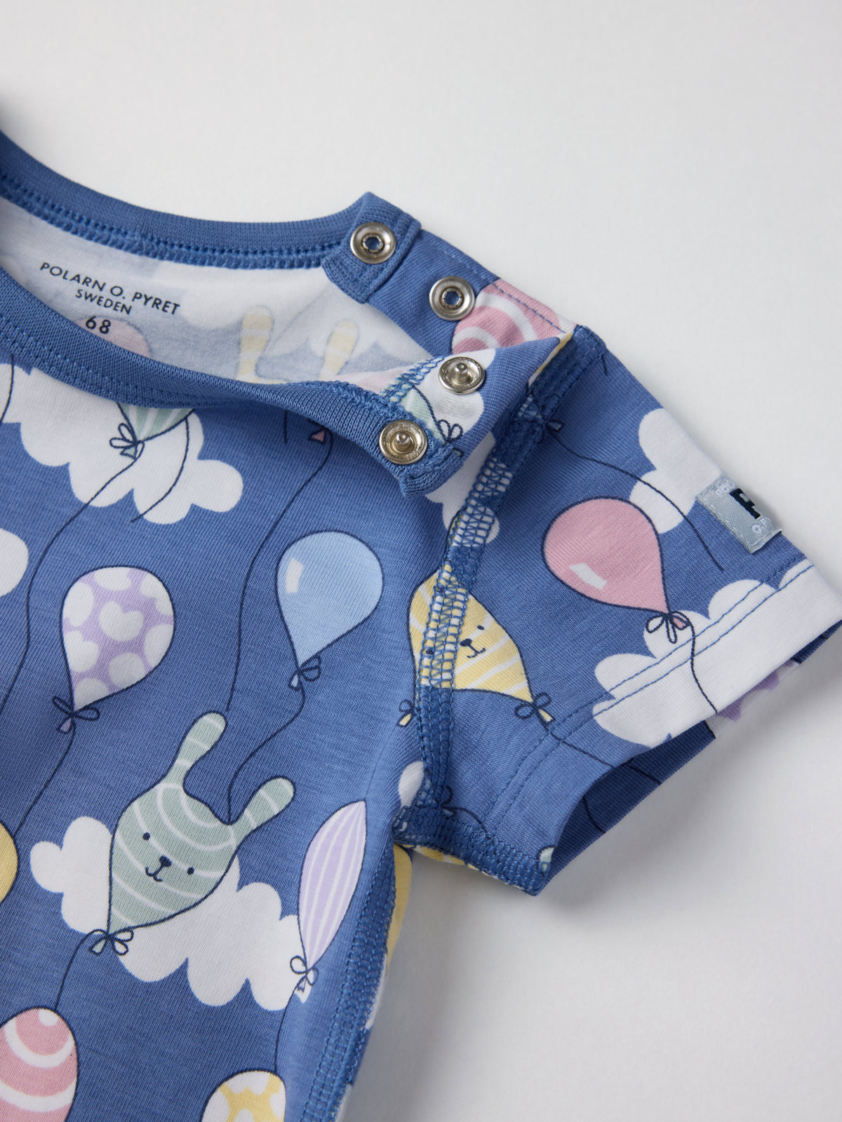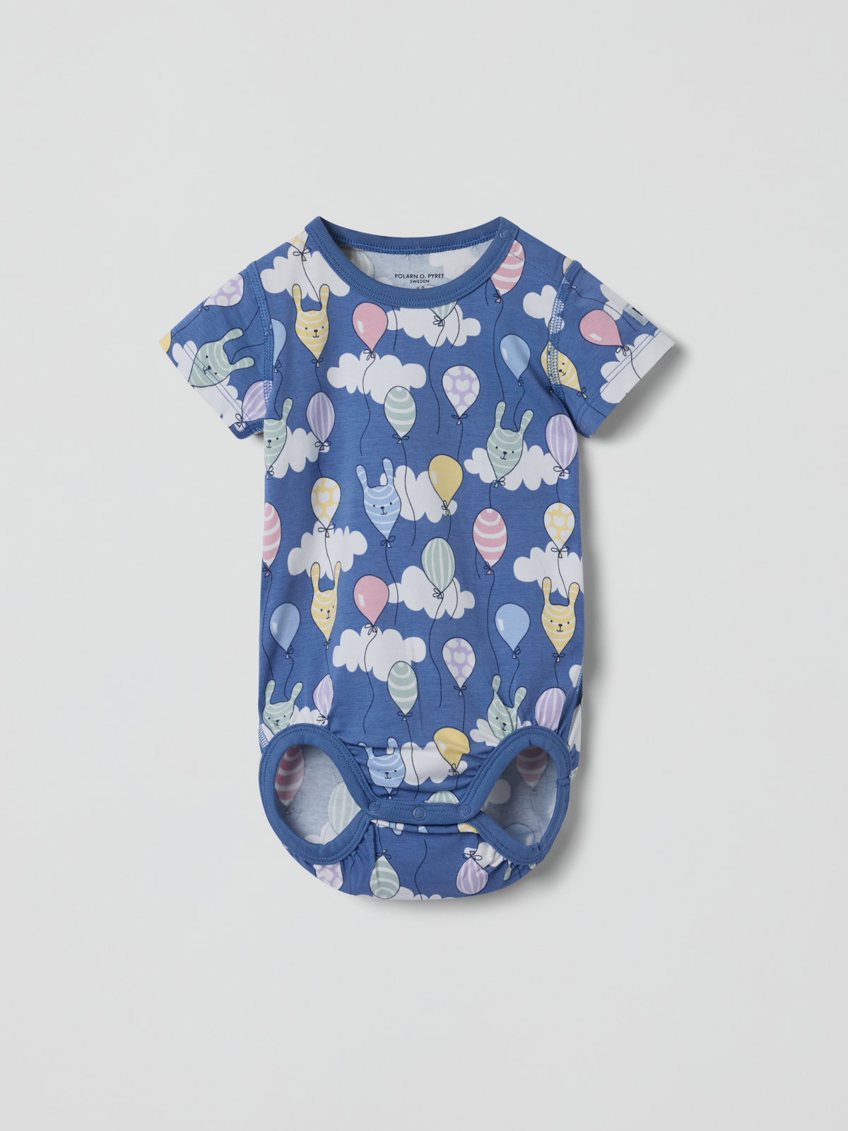 Short-sleeved bodysuit in soft organic cotton, with extra soft, flatlock seams that are gentle on sensitive skin. The bodysuit features an allover balloon print.