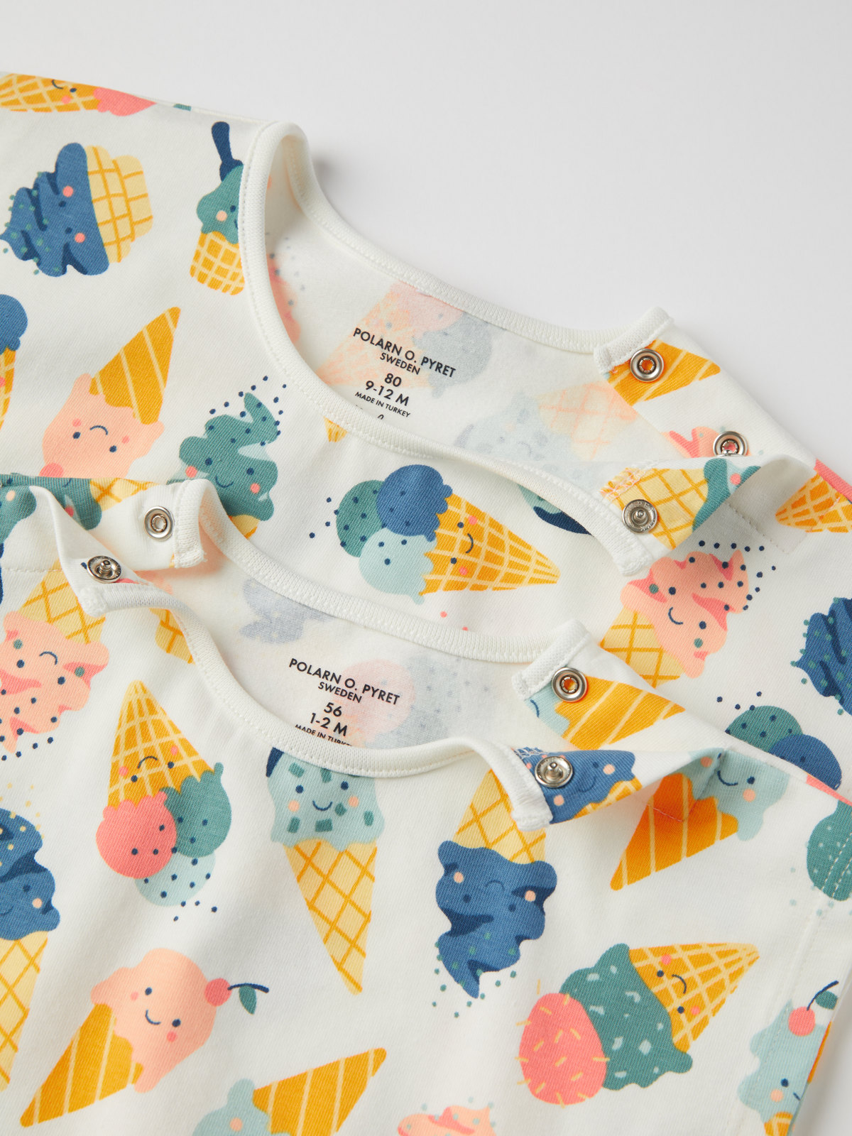 Short-sleeve bodysuit in organic cotton with an allover ice-cream print – a real summer favorite!