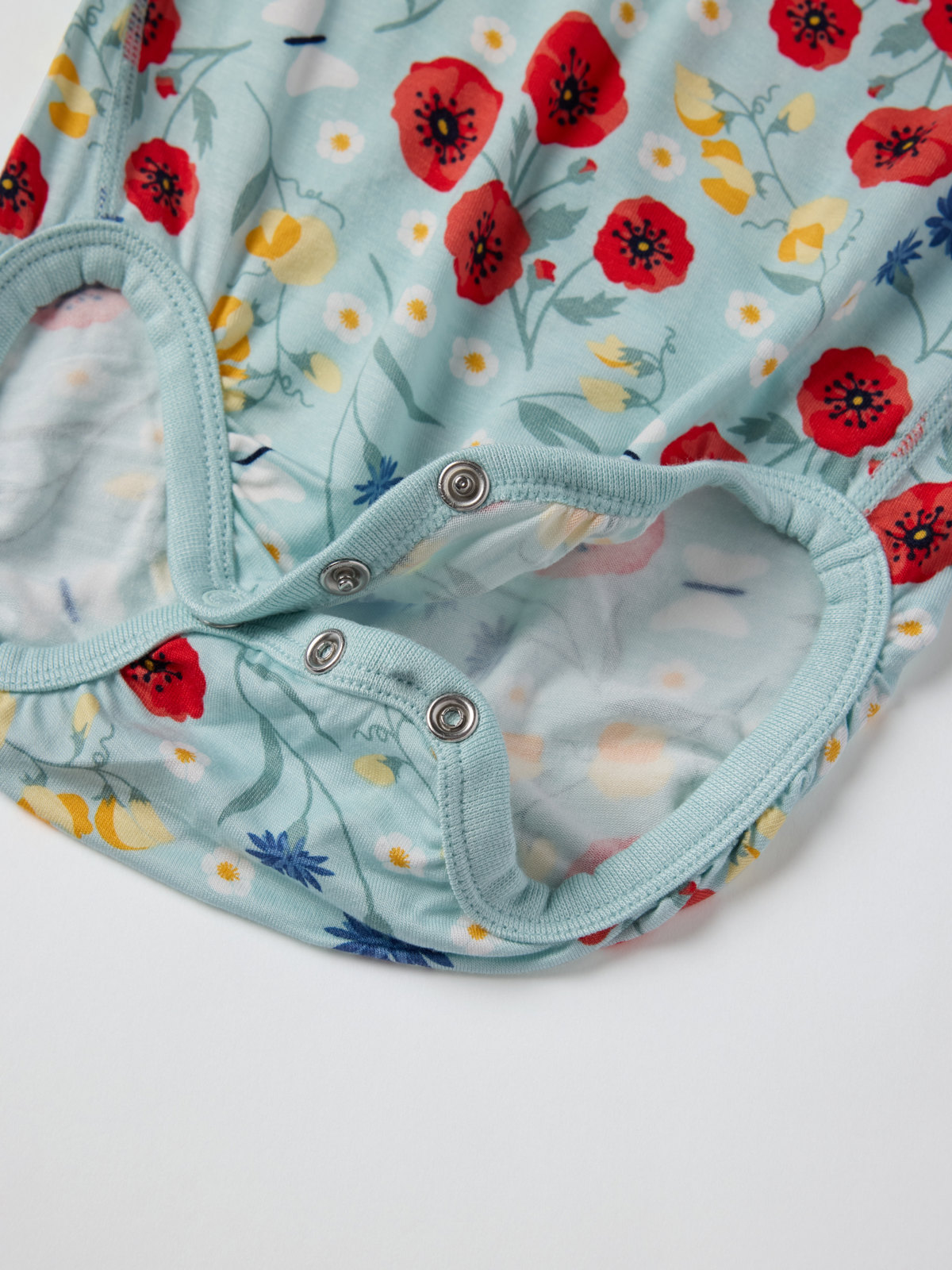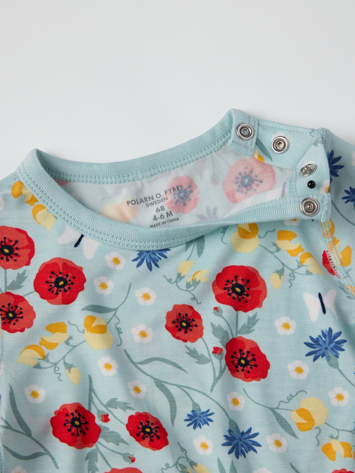 Short-sleeved floral bodysuit made of thin and cool Ecovero™ Viscose jersey – a really comfy summer favorite! The bodysuit has extra-soft, flatlock seams that are gentle on sensitive skin. Snaps at the crotch and one shoulder make dressing easy.