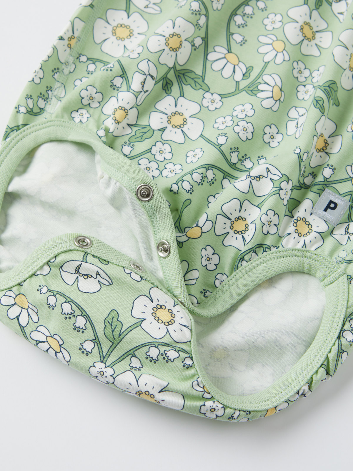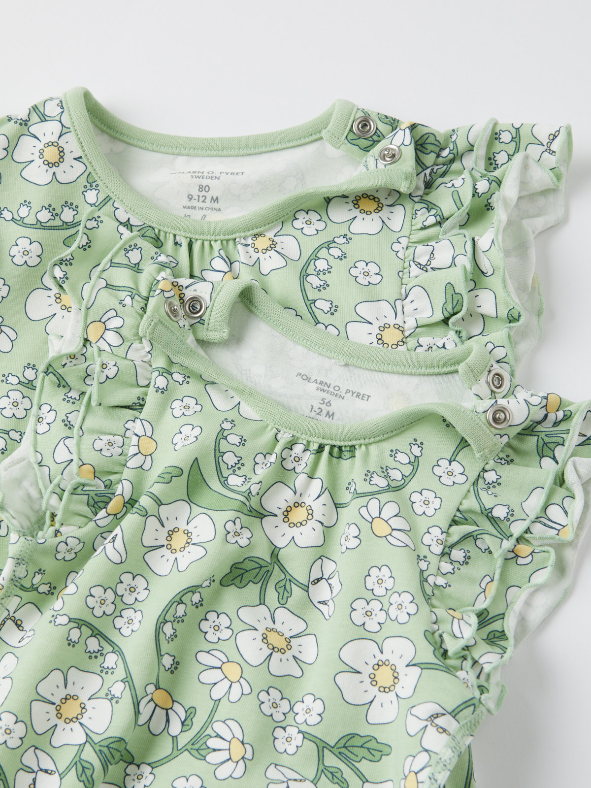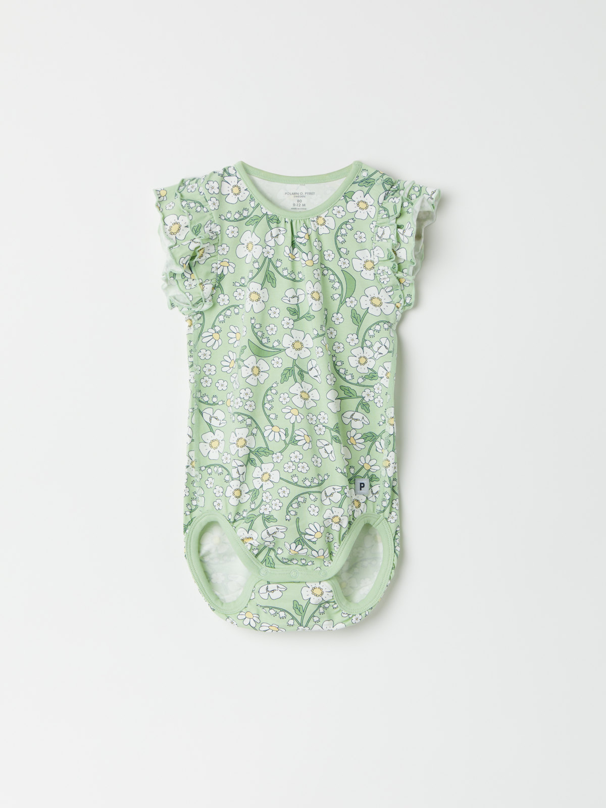 Cute bodysuit in soft organic cotton for baby. The bodysuit has an allover floral print and double frill sleeves.